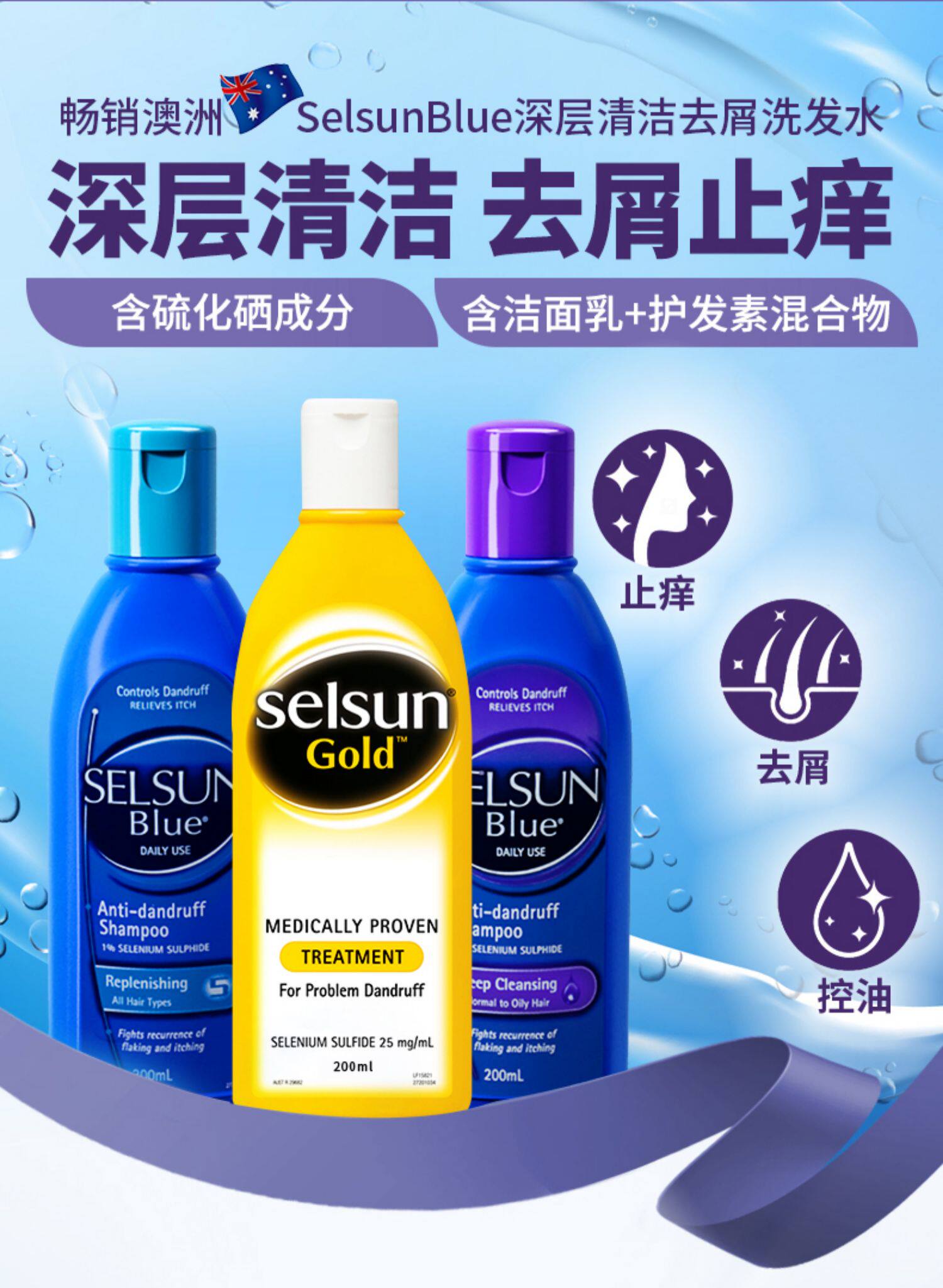 Импортный шампунь без силикона, удаление перхоти, против зуда, контроль жирного блеска