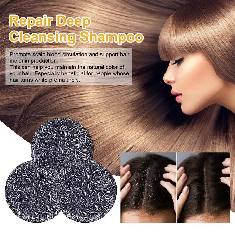 3PCS Органические волосы затемненные шампунь против седых волос мыло для волос