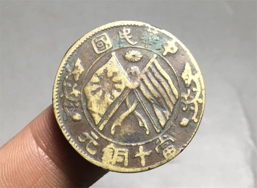 Китайская республика Цзяхэ Шуанки Крупенька Хризантема как бронзовый юань, старая медная монета монета, антиквариат Разное предмет