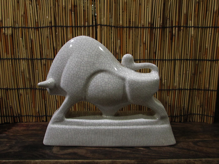 В 1970 -х годах белая глазурь на заводе Zibo Art Ceramics Factory подделала новаторскую корову.