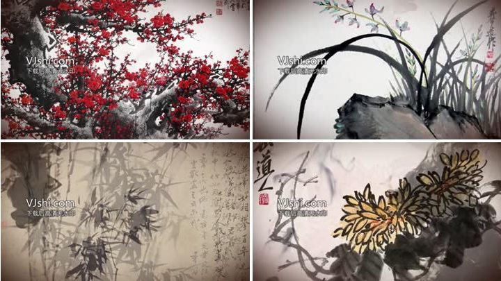 Китай фэн -чернила сливы бамбук хризантема