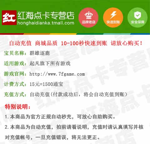 Продавец:红海点卡专营店