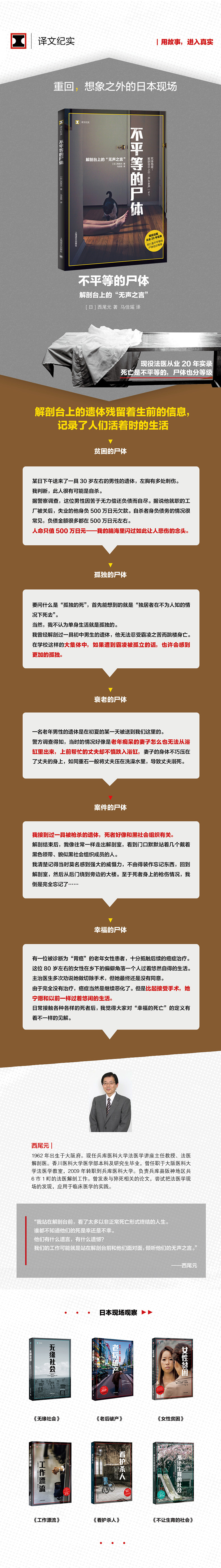 Активные судебные врачи Нишикава Юань записали свой 20 -летний опыт и опыт работы в своей карьере.Вступил в этот близкий контакт со смертью, давая ему больше возможностей подумать о значении кандидатов и смерти—— хрупкость жизни, беспомощность живых, сожаление умершего……