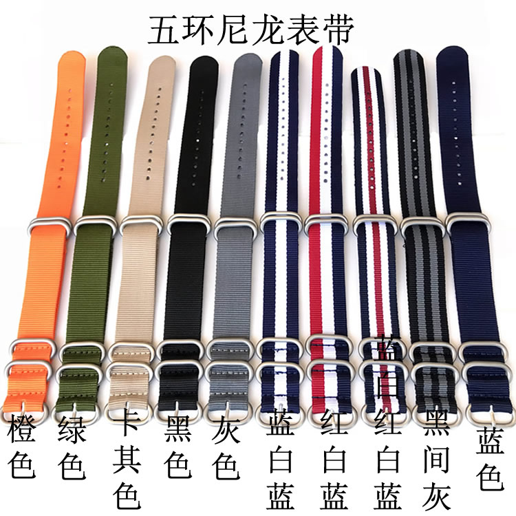 НАТО НАТО Пять кольцевого кольца Нейлоновая полоса Поперечный ремешок с канвасом от имени Seiko Water Ghost 20 22 мм