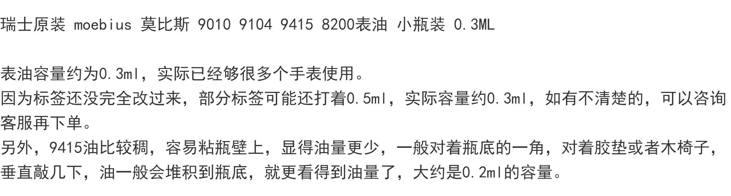 Оригинальный швейцарский швейцарский Moebius Moebius 9010 9104 9415 8200 метров масла Маленькая бутылка 0,3 мл