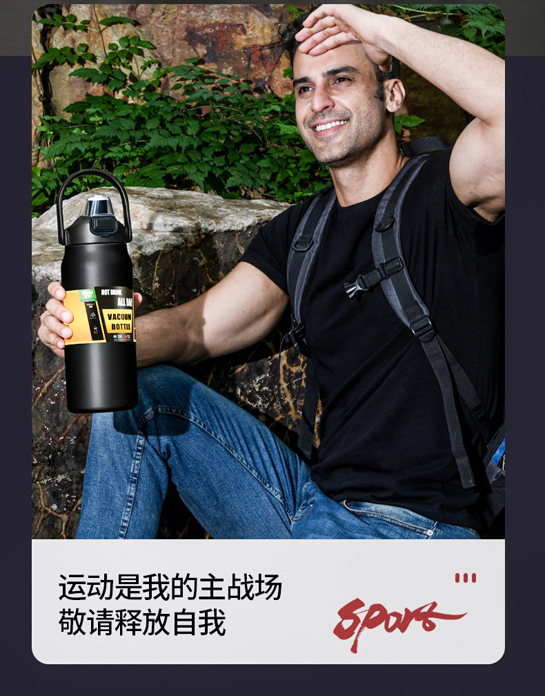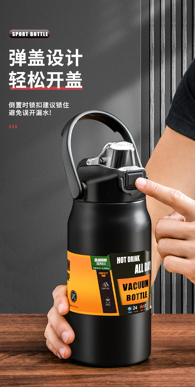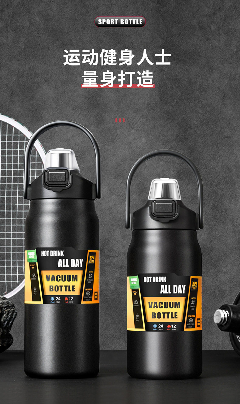 Портативный вместительный и большой термос, дорожная спортивная бутылка из нержавеющей стали для спортзала, объем 304