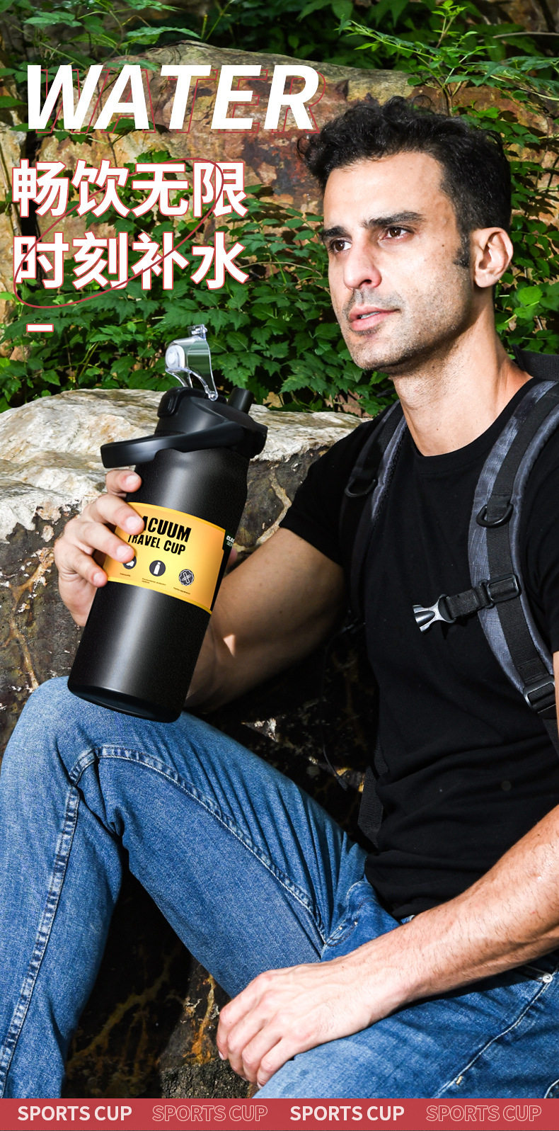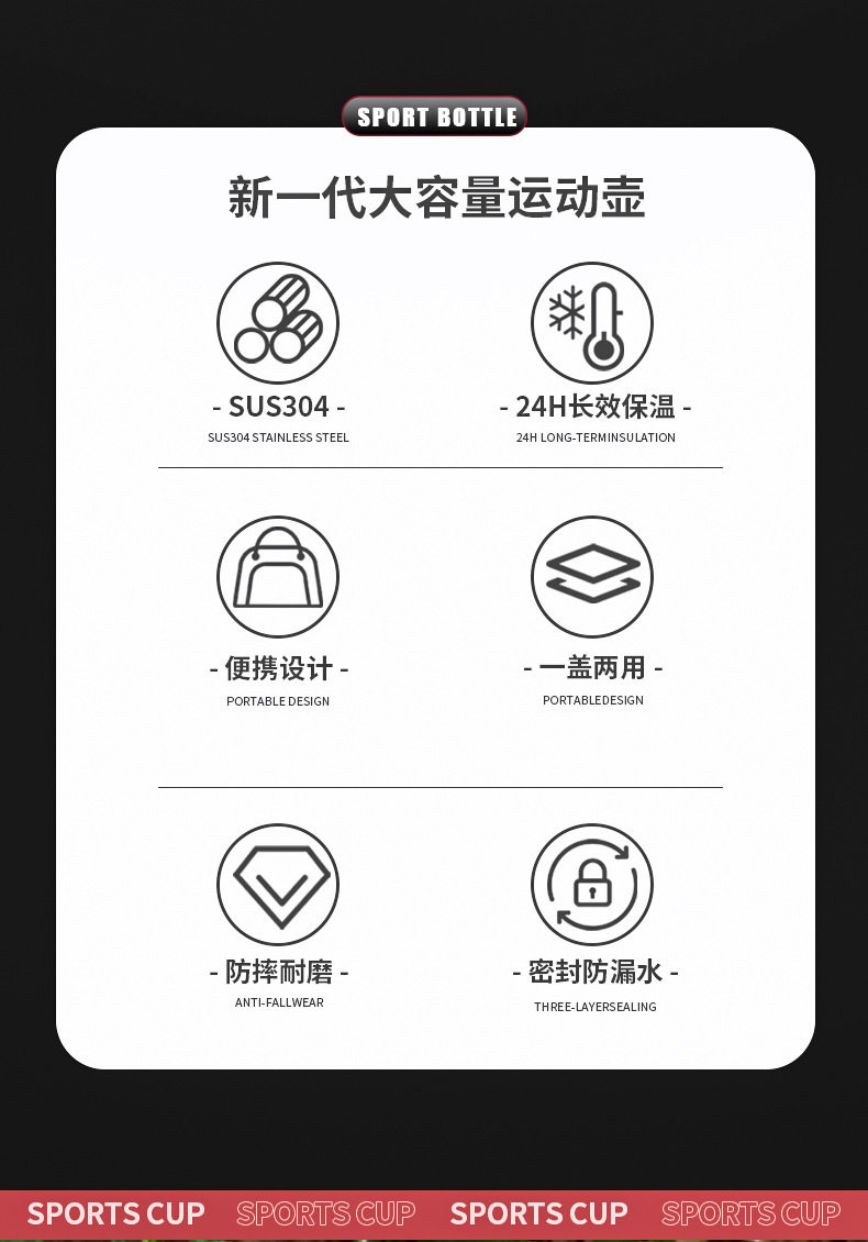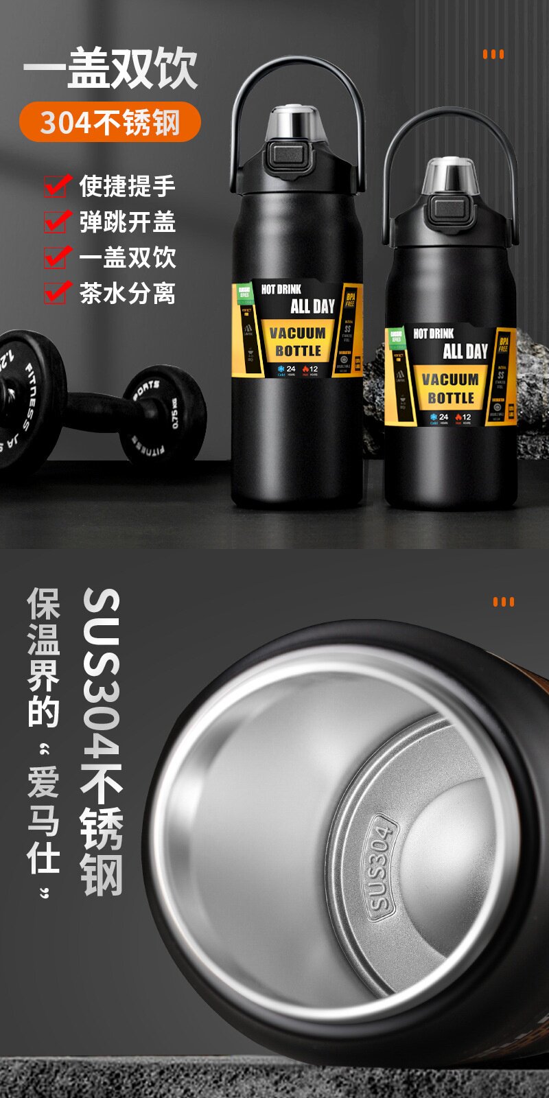 Портативный вместительный и большой термос, дорожная спортивная бутылка из нержавеющей стали для спортзала, объем 304