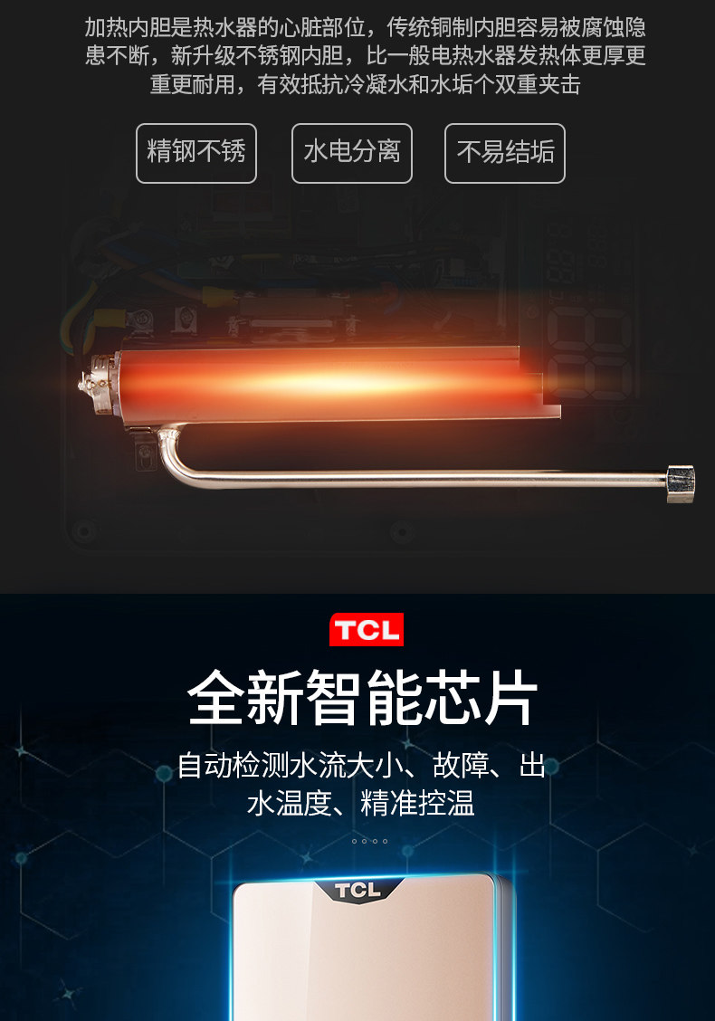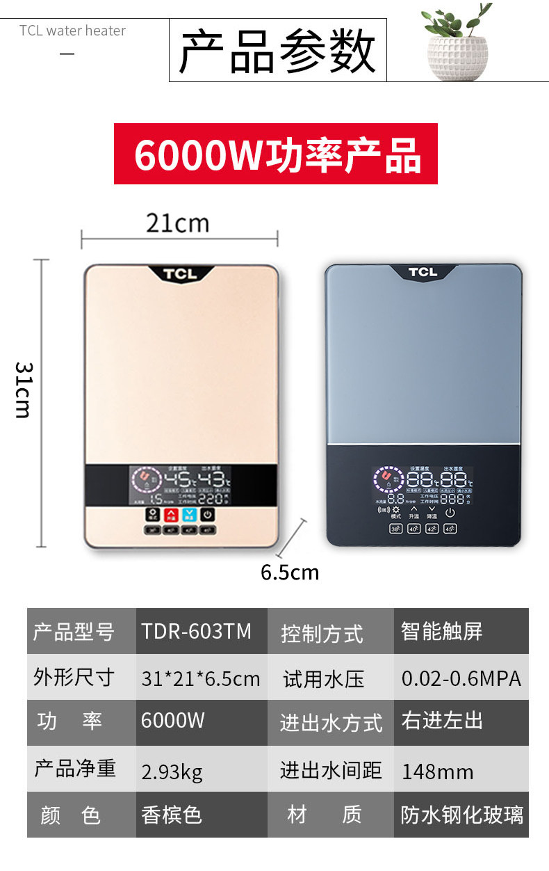 TCL Водонагреватель -горячая небольшая мини -электрическая семья Хенг Вэнь с быстрым горячим душем ванной комнатой Бесплатное хранение воды
