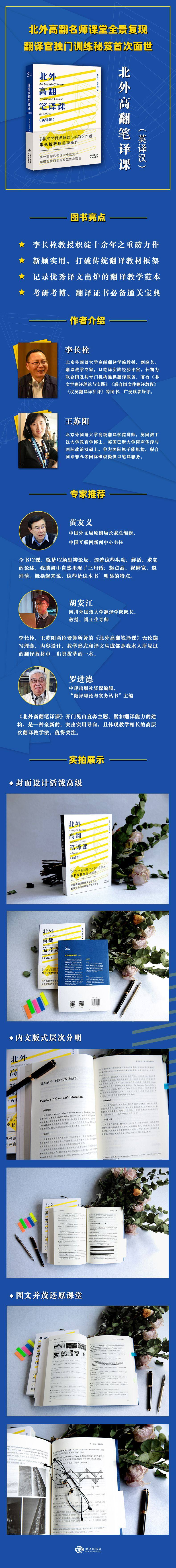 В этой книге всесторонне представлена письменная структура преподавания перевода, созданная Учебной группой Университета передового перевода Пекинского университета иностранных исследований более десяти лет.Курс перевода и перевода Университета иностранных исследований Пекина имеет два семестра.Основываясь на этом, книга разделена на две части, верно отражая общий вид перевода классной комнаты Университета иностранных исследований Пекина. Автор выбрал 2017 год—Содержание этой книги является новым и не впадает в грубое, заполняя пробел в практических книгах перевода и подходит для большинства учащихся, исследователей и энтузиастов перевода. |