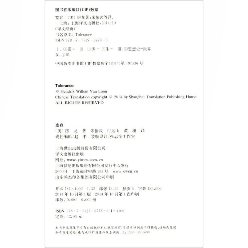 Толерантность (штраф)/перевод Classic [Mei] Fang Long и Zhu Zhenwu/fu Yuanshan/Huang Shan Перевод - популярная историческая книга для чтения Аутентичная издательство книги в Шанхайском переводе Century Publishing