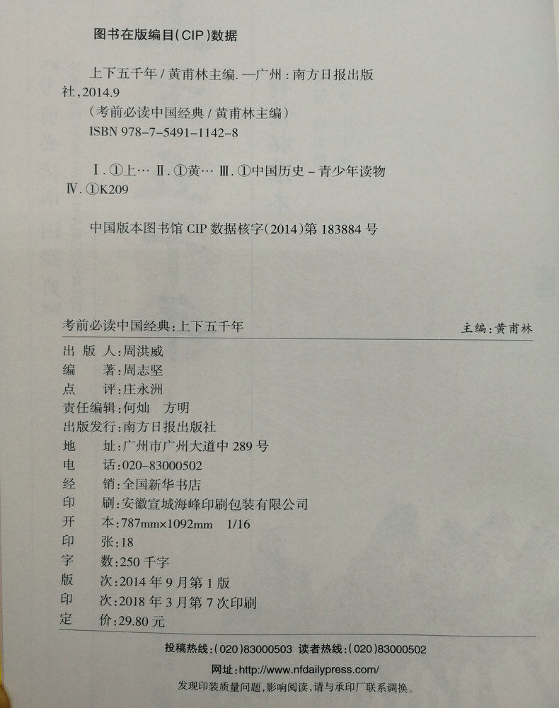 Подлинная бесплатная доставка 5000 лет новой учебной программы Стандартная студенческая версия Nanfang Daily Publish