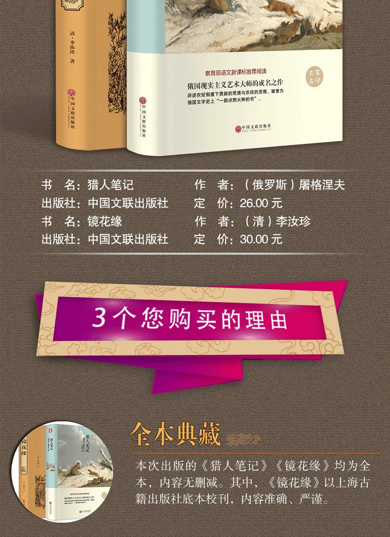 Подлинный ролик, полные 2 тома «Цветов в зеркале + Записки охотника», полный перевод / мировой литературный шедевр, чтение учащихся старших и младших классов средней школы, «Цветы в зеркале», шедевр китайской классической литературы (династия Цин), роман Ли Жучжэня