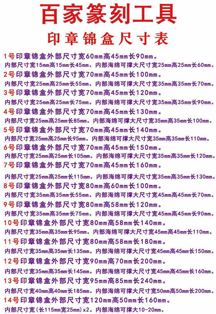 [Инструкции по покупке] Размер парчонной коробки с № 1 по 14 можно сравнить с подробной таблицей размеров страницы, выберите подходящий размер уплотнения и непосредственно фотографировать, вы также можете связаться с онлайн -обслуживанием клиентов.(Цена вышеупомянутых детей - это единственная цена.) Если есть другие специальные размеры, может быть настроена партия.