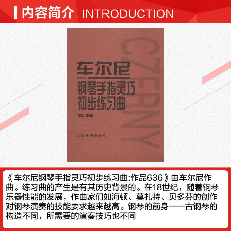 «Предварительный этюд Черни для ловкости пальцев фортепиано: Opus 636» был написан Черни.Возникновение этюдов имеет свою историческую подоплеку.В XVIII веке, с развитием игры на фортепианных инструментах, произведения таких композиторов, как Гайдн, Моцарт, Бетховен, требовали все более высокого мастерства игры на фортепиано.Предшественник фортепиано——Строение фортепиано разное, и требуемые навыки игры тоже разные, а игра на фортепиано пальцами требует большей силы и выносливости.Преподаватели фортепиано признали необходимость усиления технической подготовки. Поэтому ученик Бетховена Черни написал для своих учеников сотни этюдов на различные технические темы.Многие пианисты и преподаватели также написали этюды, чтобы адаптироваться к своим педагогическим потребностям и концепциям, постепенно формируя систему тренировки пальцев при обучении игре на фортепиано.В условиях непрерывного развития европейской фортепианной музыки, изменения музыкального стиля, сложности исполнительского мастерства и богатства музыкального содержания этюды, выступающие в форме музыки, уже не рассматриваются как этюды, как, например, этюды Шопена.