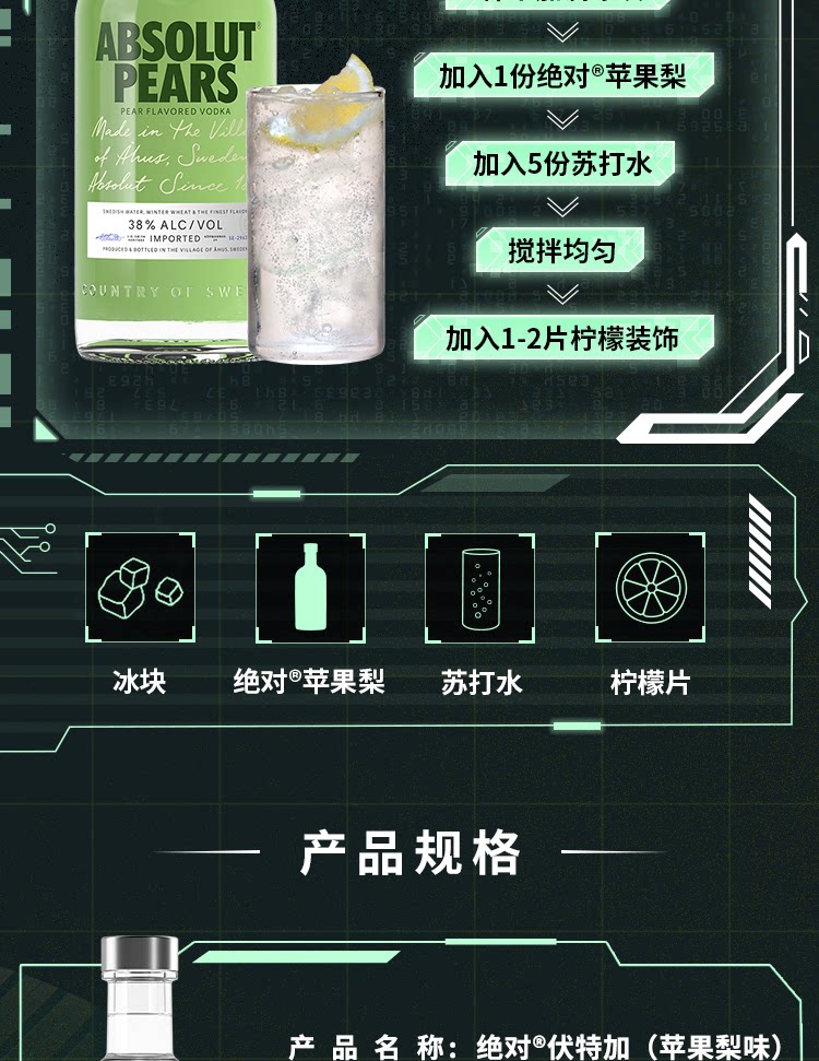 [Импорт] Абсолют абсолютная водка Apple Pear 700 мл × 1 бутылка шведского винного спирта Специальная