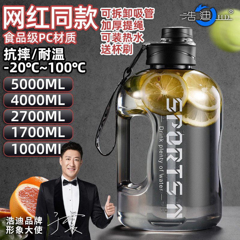 Вместительная и большая спортивная бутылка со стаканом, ведро, 5000 мл