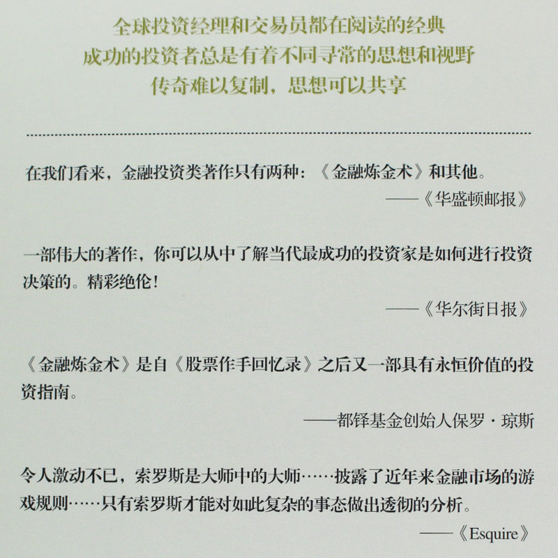 Сорос назвал эту книгу «Финансовая алхимия», не ссылаясь на свои секреты на финансовом рынке, а из -за его почти скромного страха рынка, эта теория скромно определила эту теорию в финансовых экспериментах в смысле.
