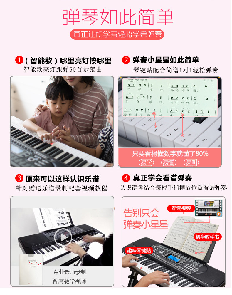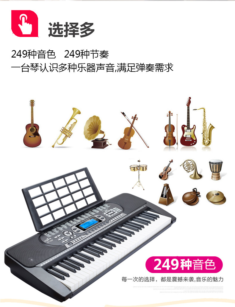 Универсальный профессиональный синтезатор для взрослых для начинающих, 61 клавиш, обучение