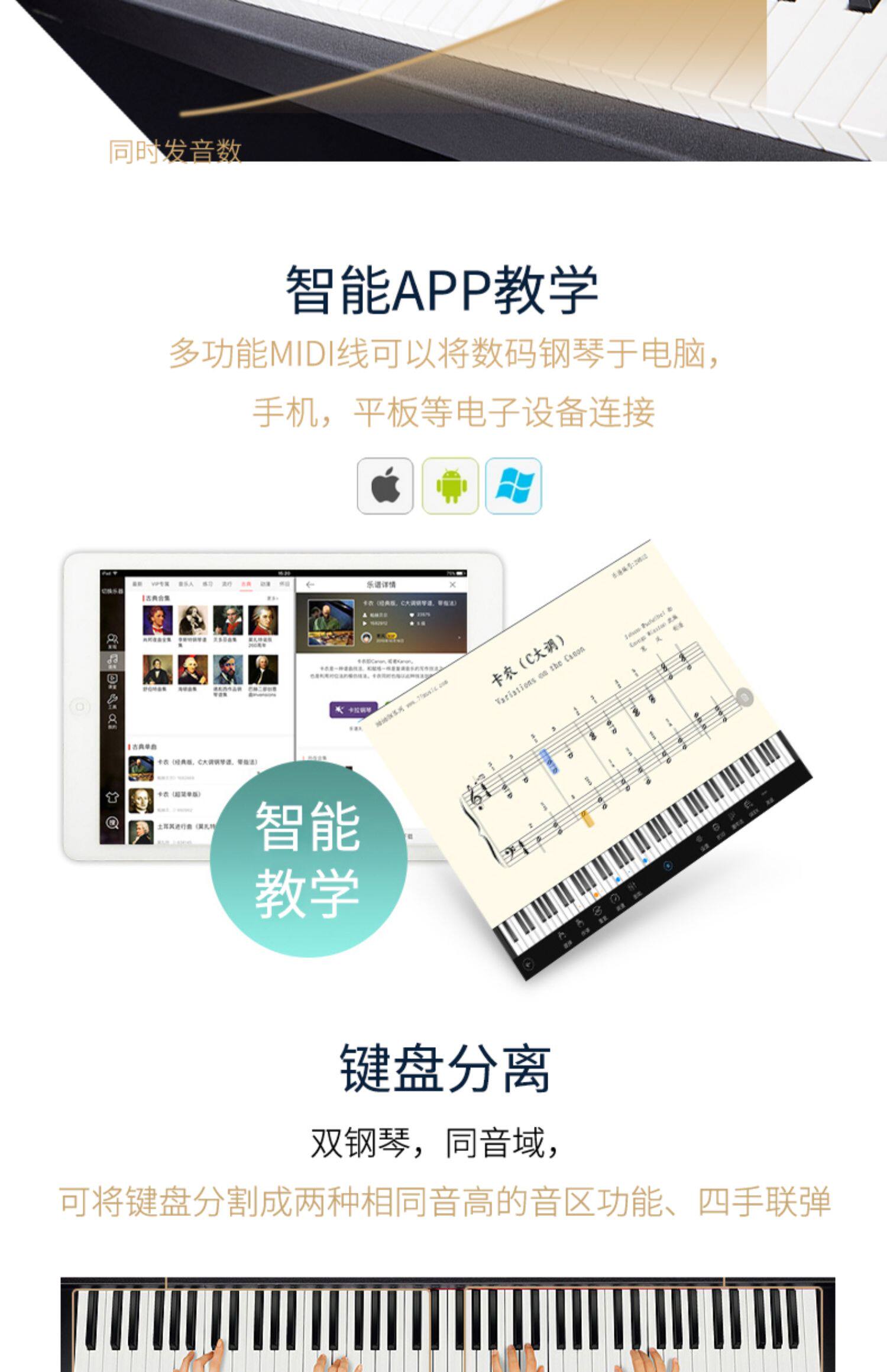Умный синтезатор, цифровое профессиональное пианино, 88 клавиш