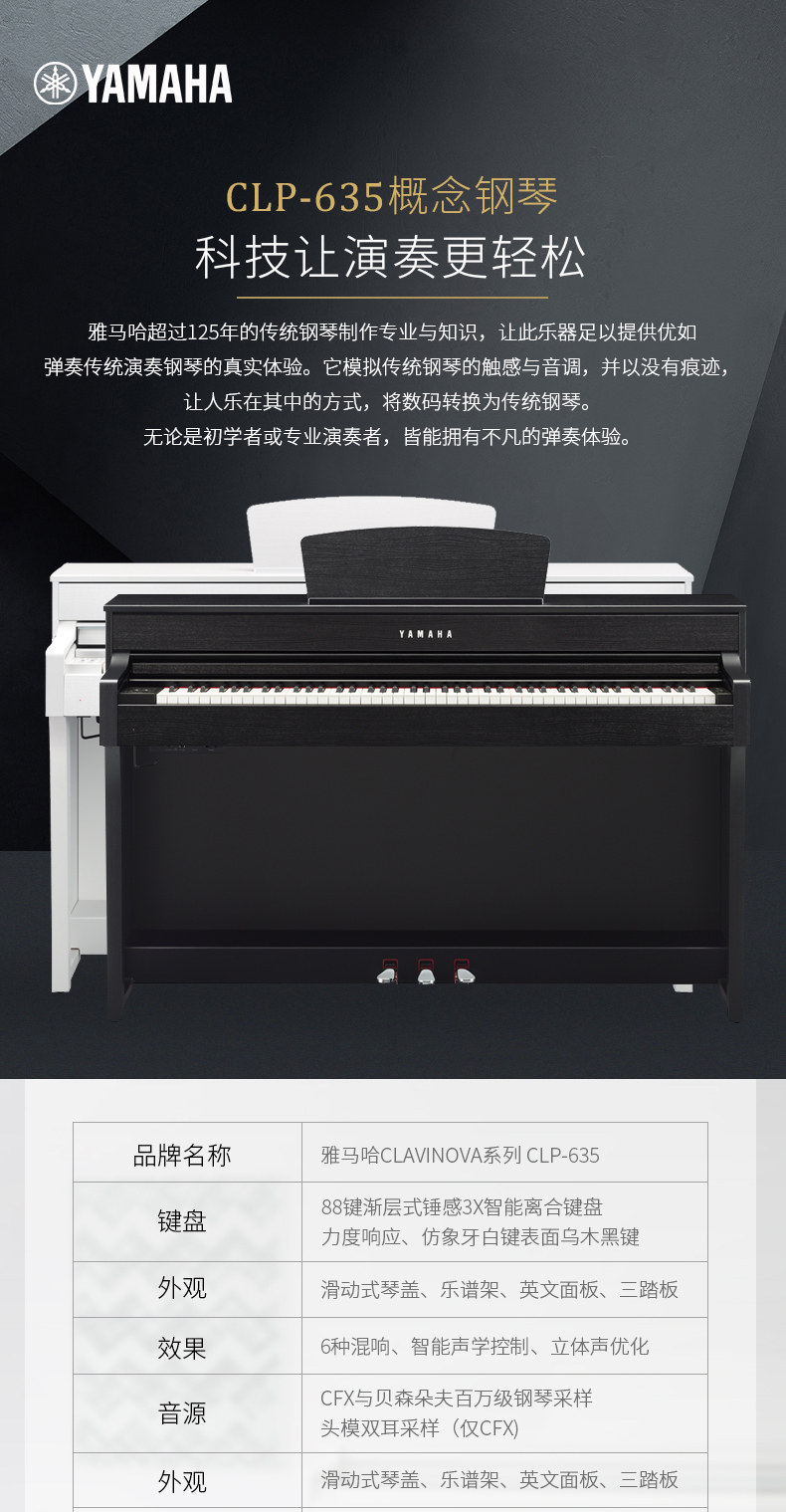 Yamaha CLP-635B Высококачественный электрический пианино профессиональный вертикальный дом для взрослых 88 Ключевой тяжелый молот CLP535 Обновление