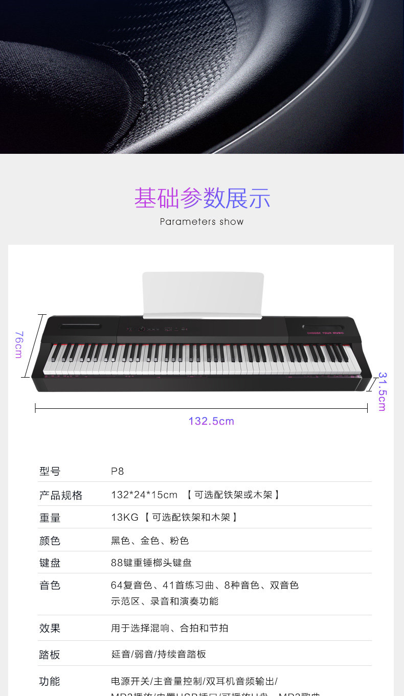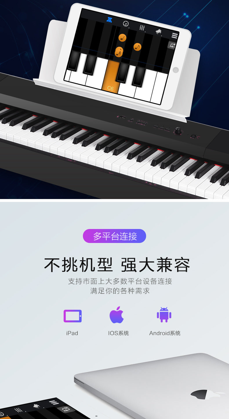 音嘉 Портативный синтезатор, электронное пианино для взрослых для начинающих, 88 клавиш