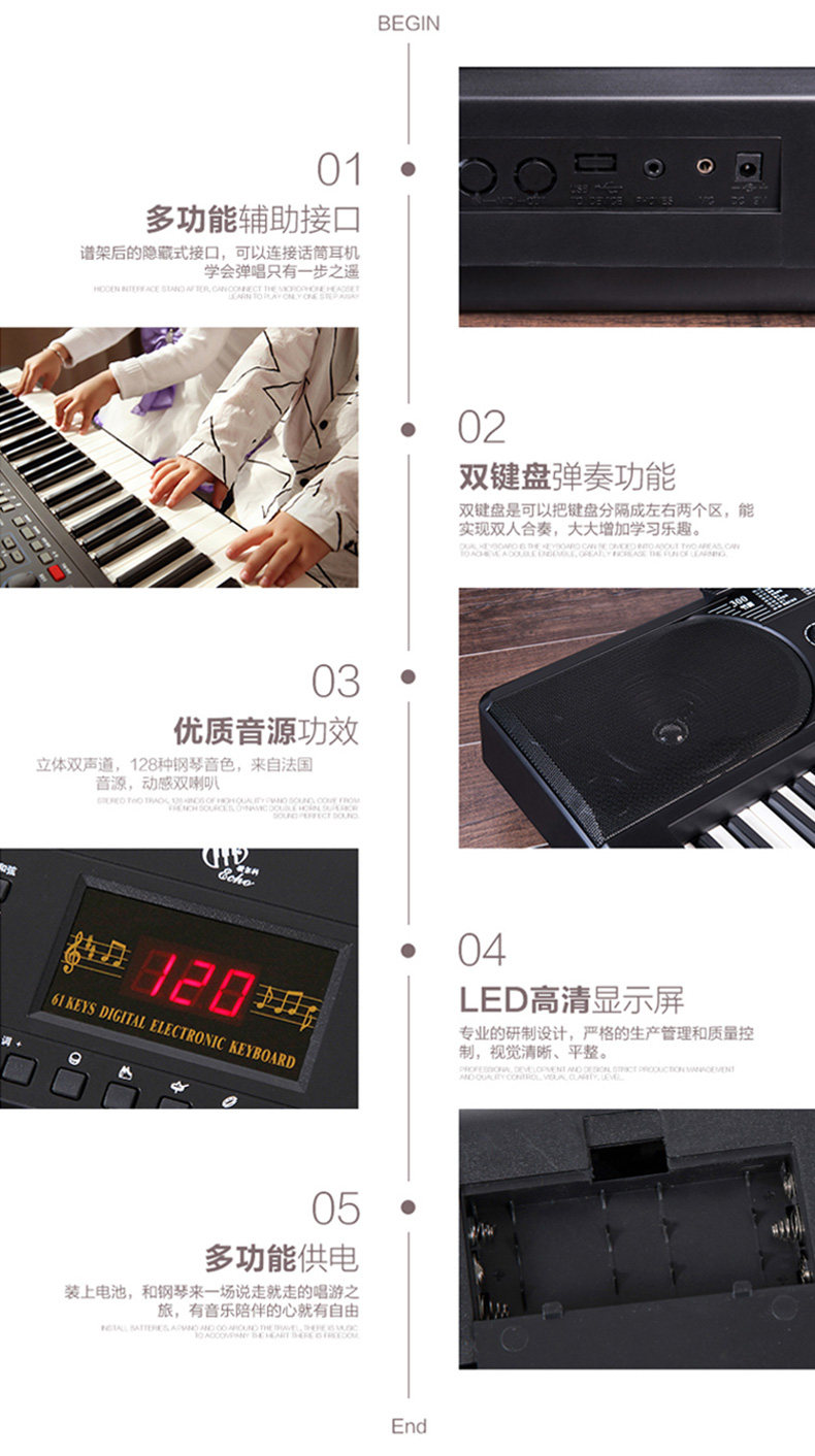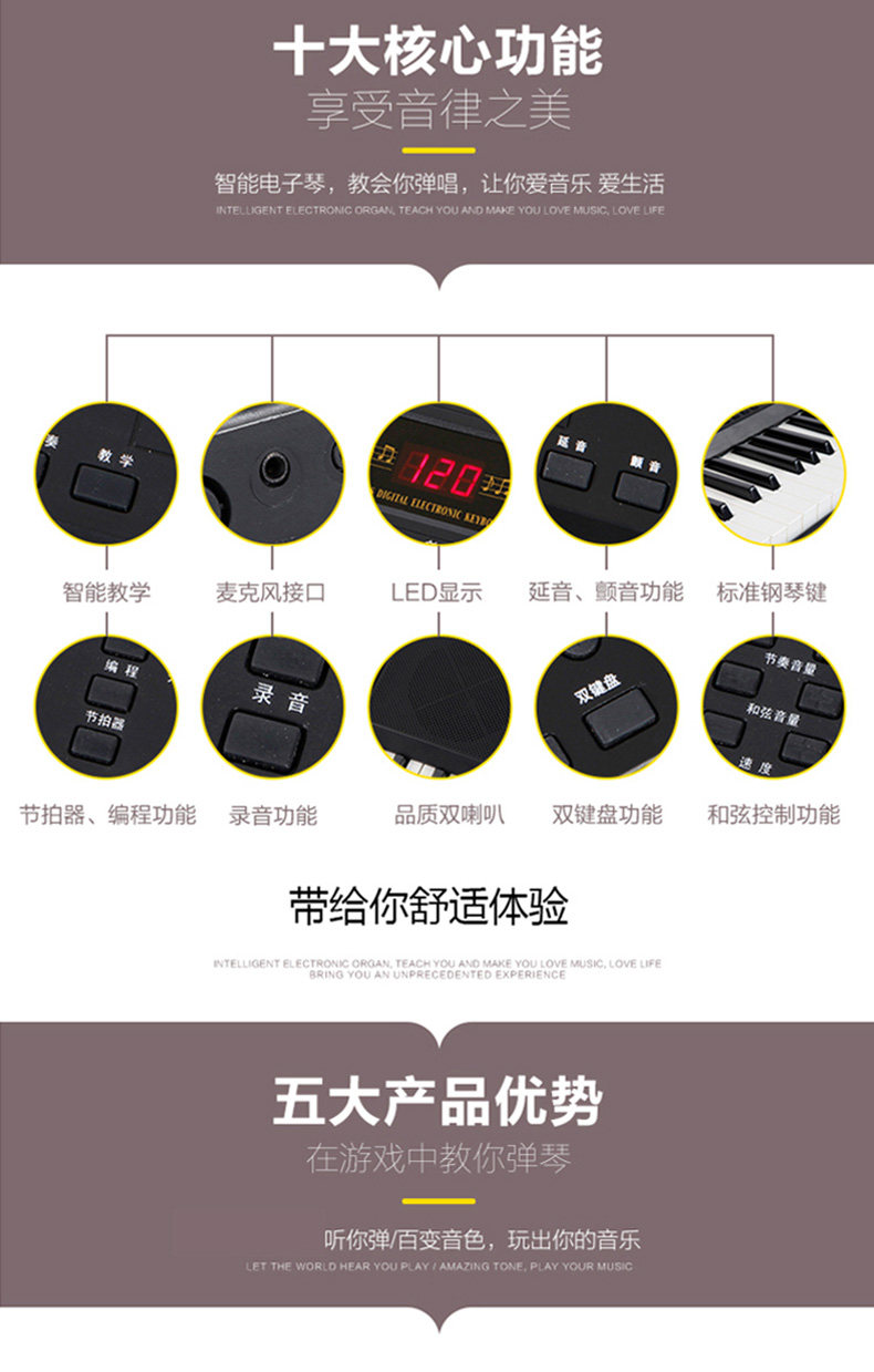 Универсальный базовый синтезатор для школьников, профессиональные музыкальные инструменты для начинающих, 61 клавиш