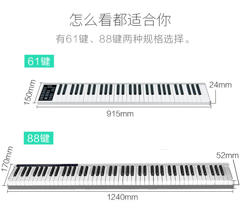 Портативное складное электронное пианино, профессиональная цифровая клавиатура для начинающих, 88 клавиш