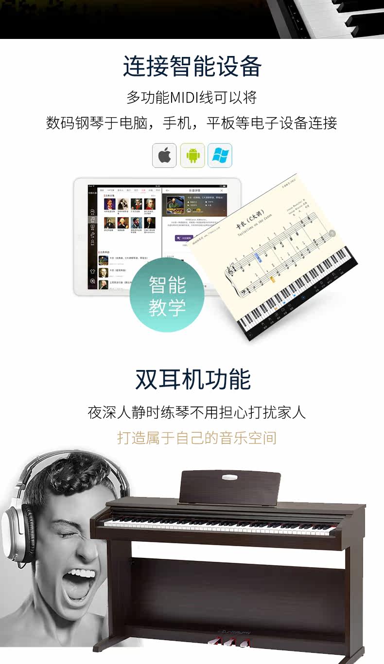 Профессиональное цифровое умное электронное пианино для взрослых для начинающих, 88 клавиш
