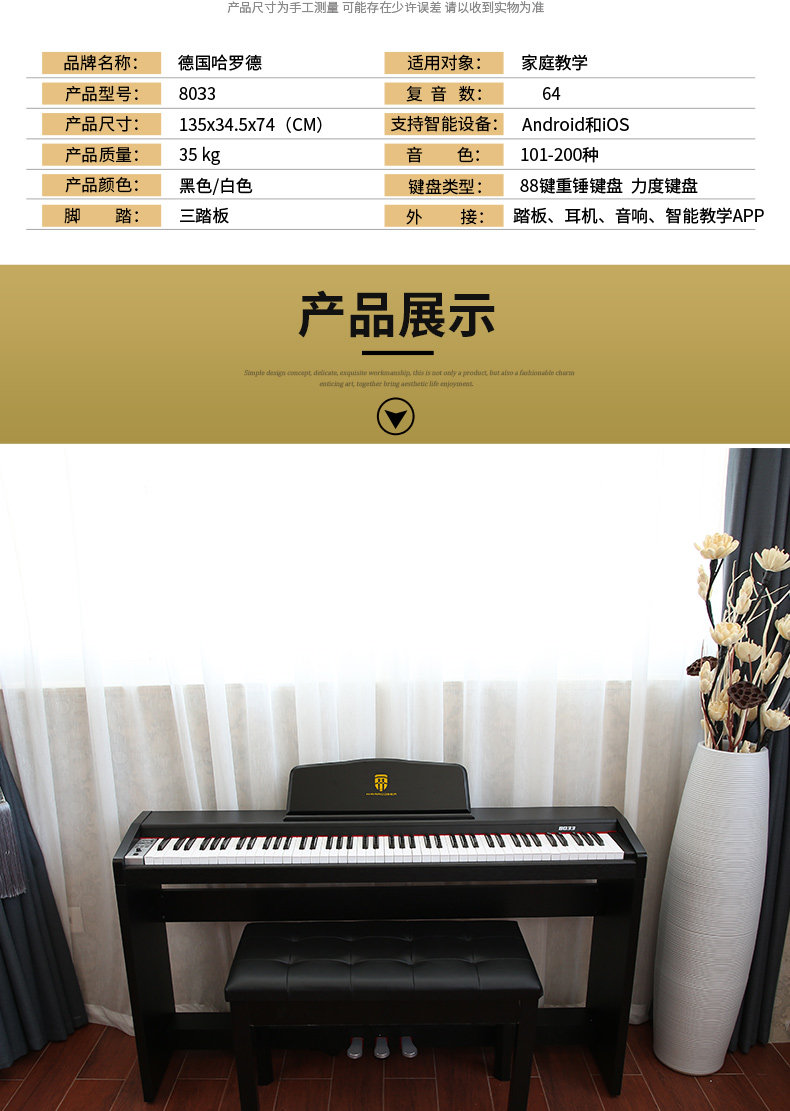 哈罗德 Синтезатор, портативное электронное цифровое профессиональное освещение для пианино для детей и взрослых, 88 клавиш, подходит для начинающих