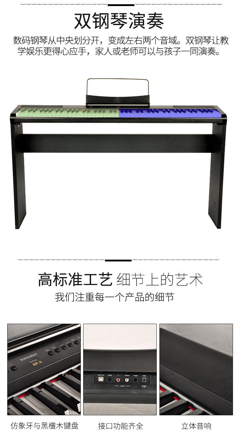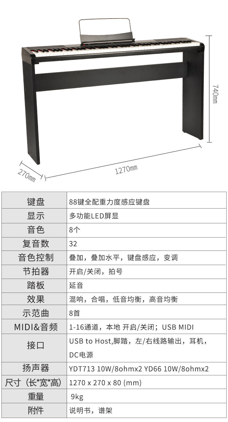 Синтезатор, портативная клавиатура, цифровое пианино, 88 клавиш, обучение, подходит для начинающих