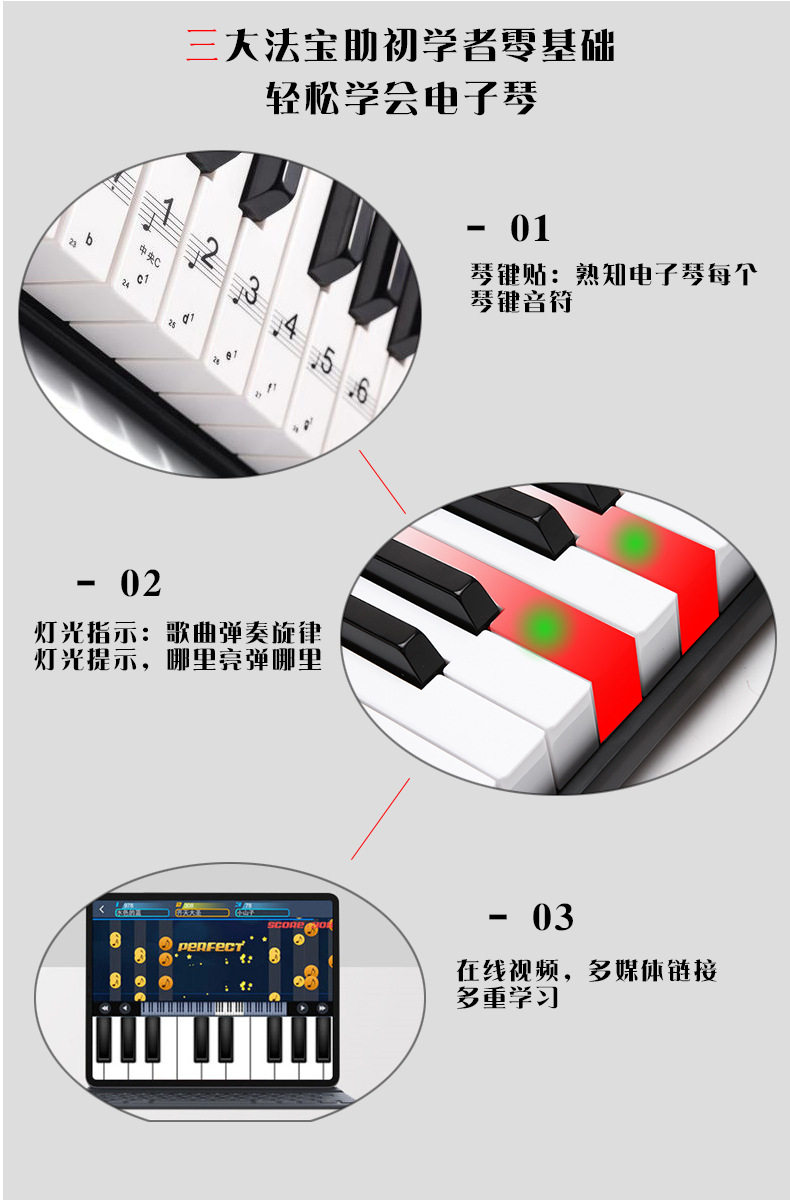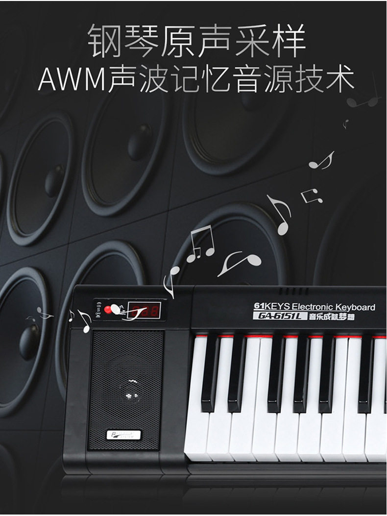 Золотой синтезатор, электрические музыкальные инструменты для начинающих, 61 клавиш, обучение
