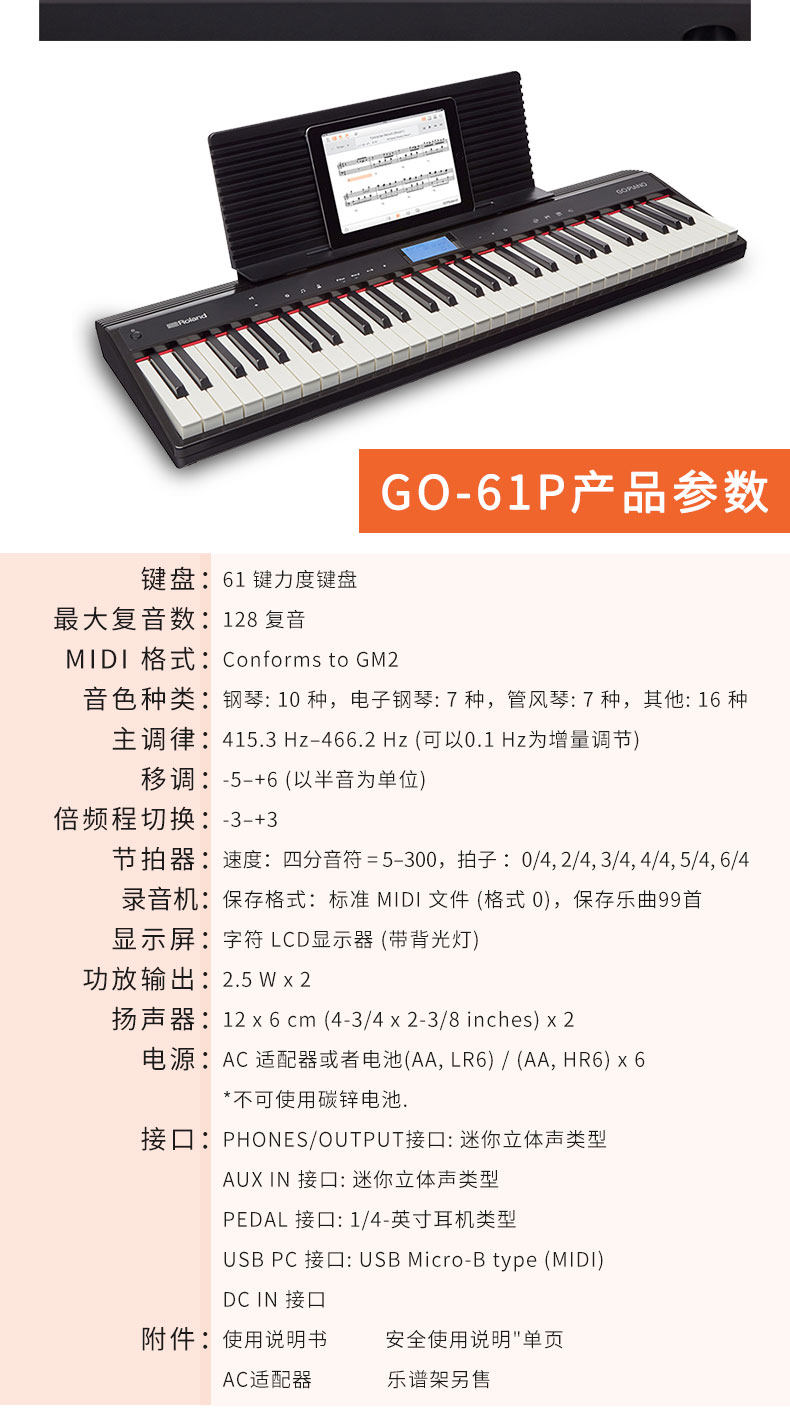 Roland Roland Portable Electric Piano Go-61P GO-61K Bluetooth Child Kid