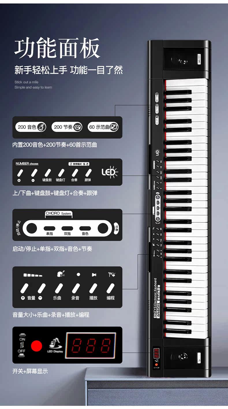 Умный профессиональный синтезатор для детей и взрослых для начинающих, 61 клавиш