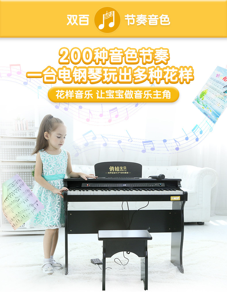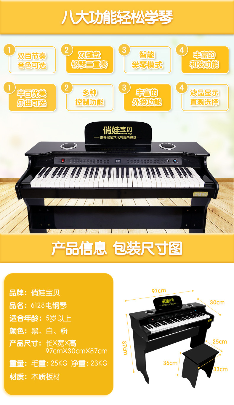 俏娃宝贝 Синтезатор для начинающих, цифровое умное деревянное пианино
