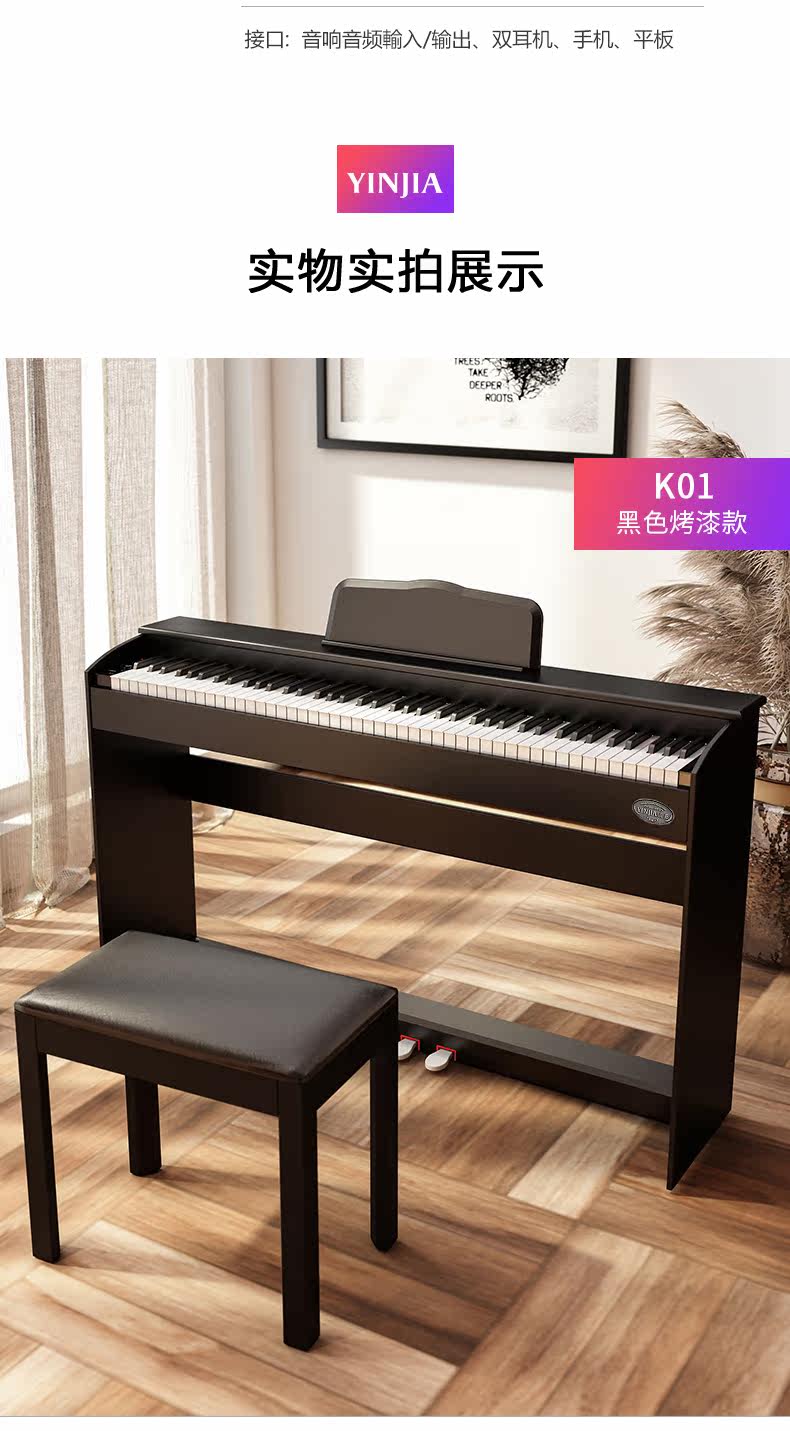 音嘉 Профессиональный цифровой синтезатор для взрослых для начинающих, P200, 88 клавиш