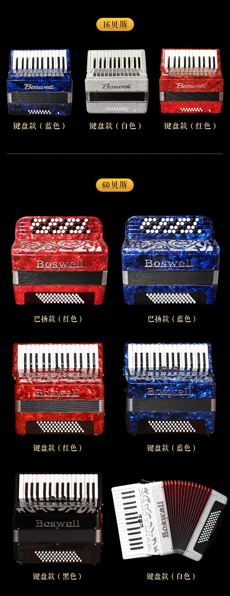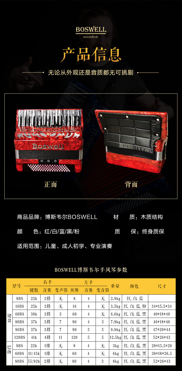 Оригинальный импортный аккордеон Boswell 8/16/60/80/96/120 для проверки басов.
