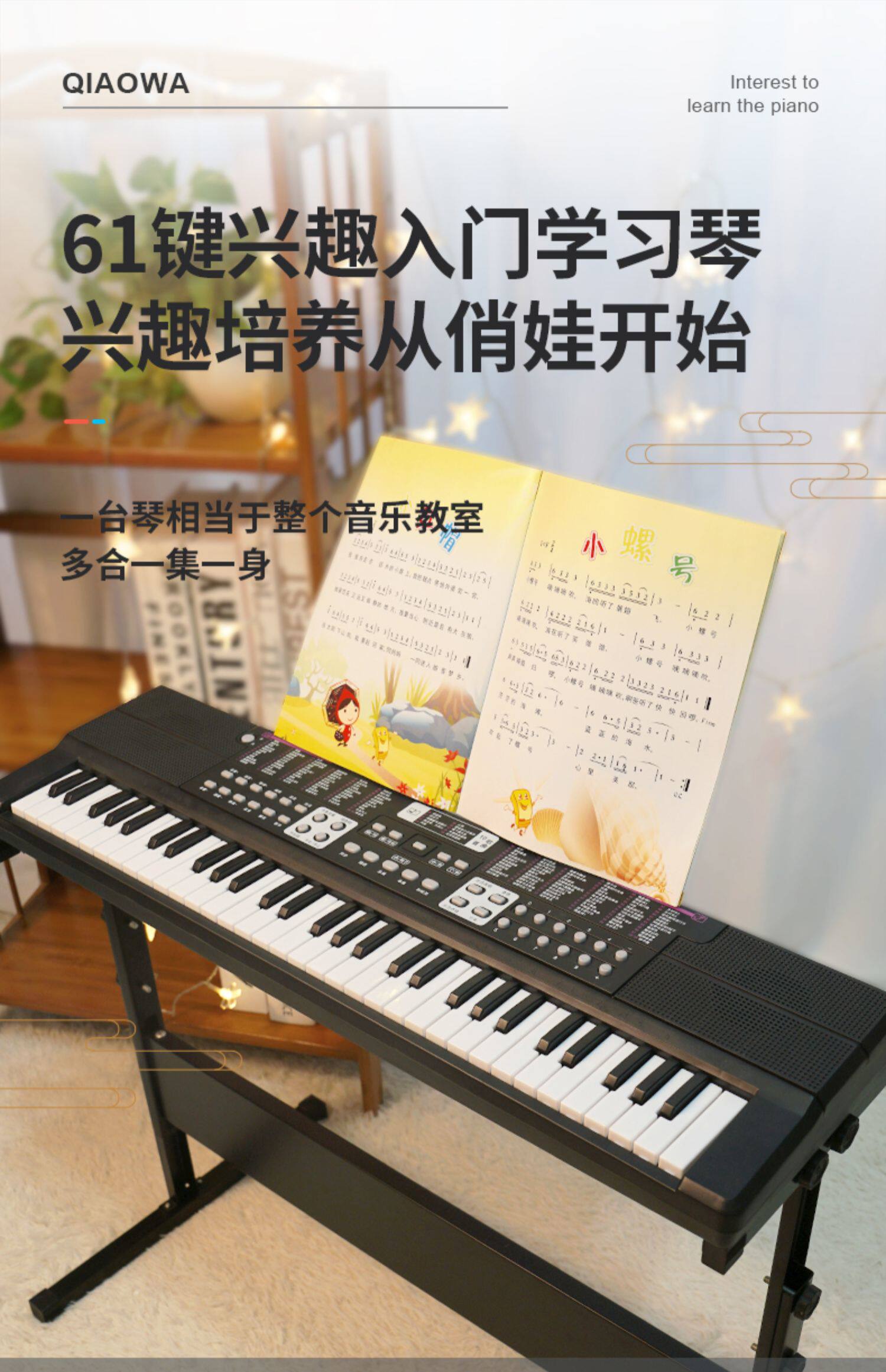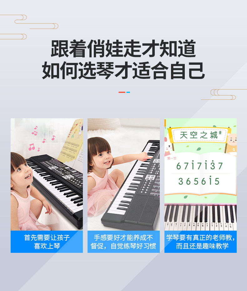 俏娃宝贝 Электрический синтезатор для начинающих, универсальная игрушка для взрослых, музыкальные музыкальные инструменты, 61 клавиш