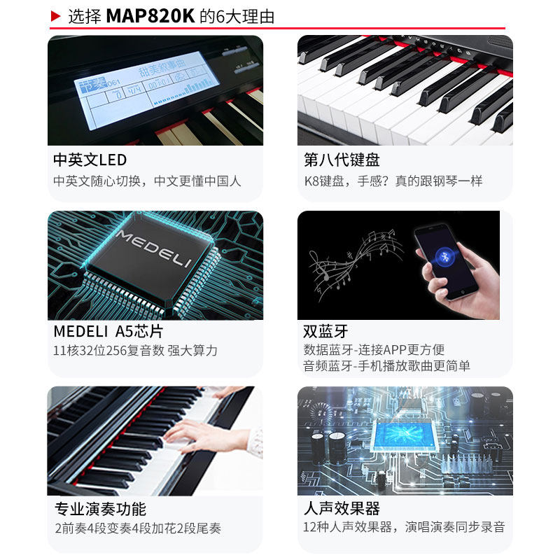Meidi Map820k Электрическое пианино 88 -Клеи Тяжелый молот флагман с двойным Bluetooth -Stage -Level Special Piano