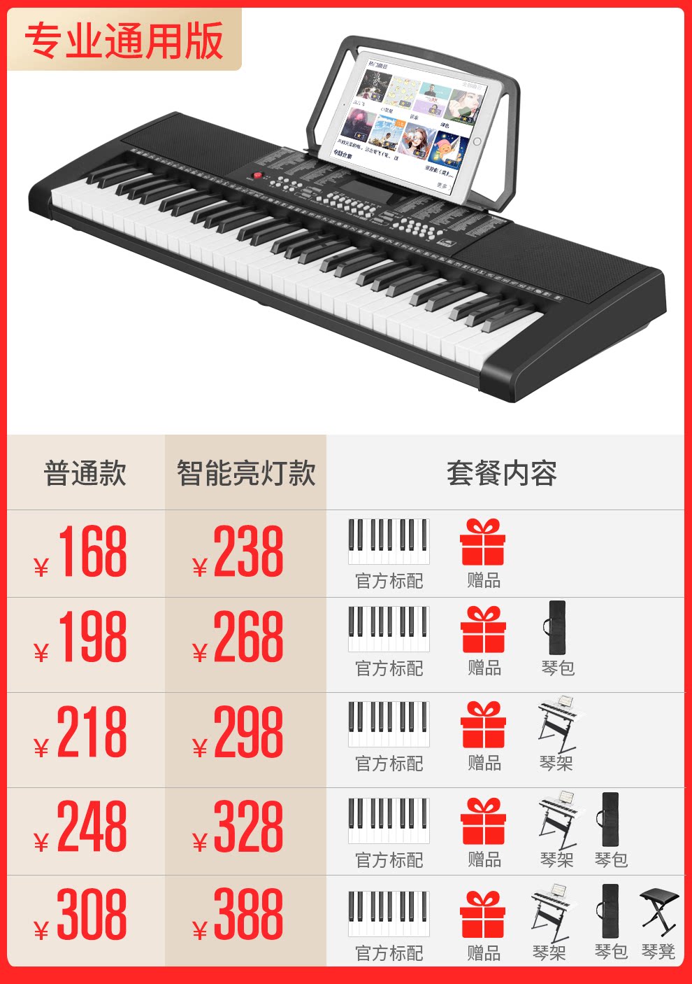 | Тип пакета: | Официальная стандартная конфигурация, Стандартный+пианино сумка, Стандартный+z -тип пианино, Стандартный+пианино -пакет+z -форма для фортепианной стойки, Стандартный+пианино сумка+Z -форма для фортепианной стойки+пианино -табурет, Стандартный+Gongfang Piano Rack |