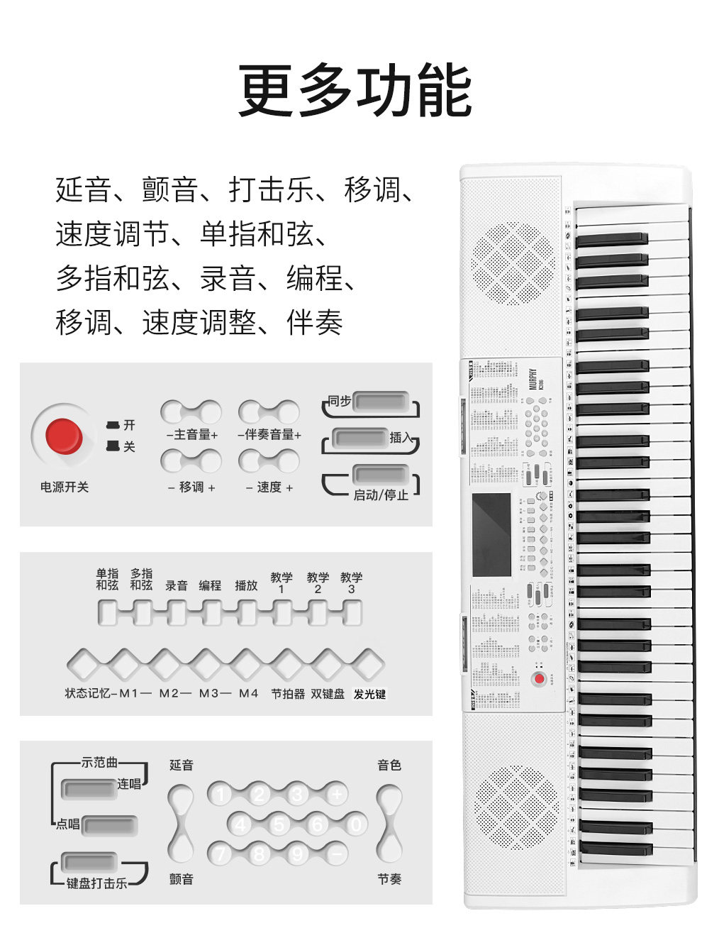| Цвет: | Черно-стандартное издание, Белый стандарт, Черные огни и отскакивающие издание, Белый смарт яркий свет и прыгающее издание, Портативное пианино, клавиатура, 88 клавиш |