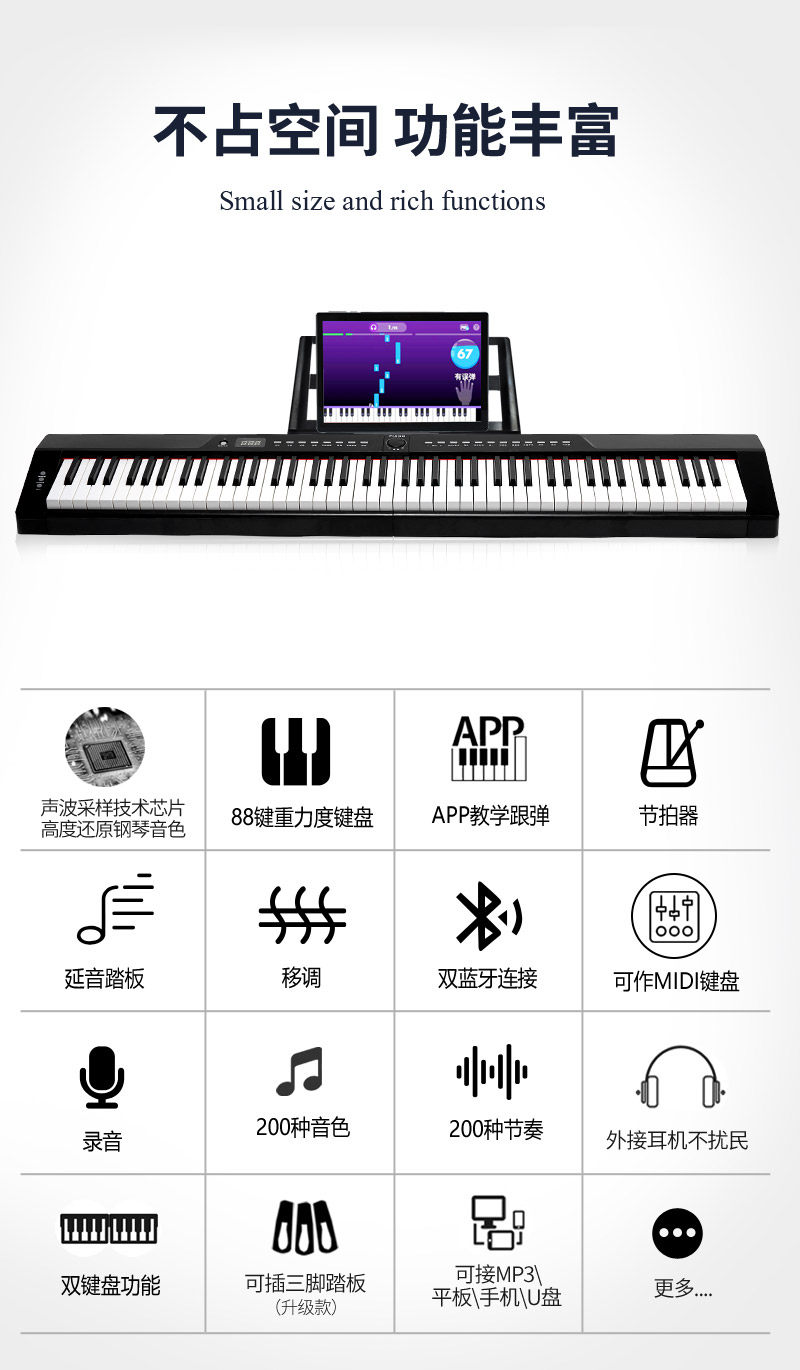 Электронное профессиональное универсальное портативное пианино для начинающих, 88 клавиш