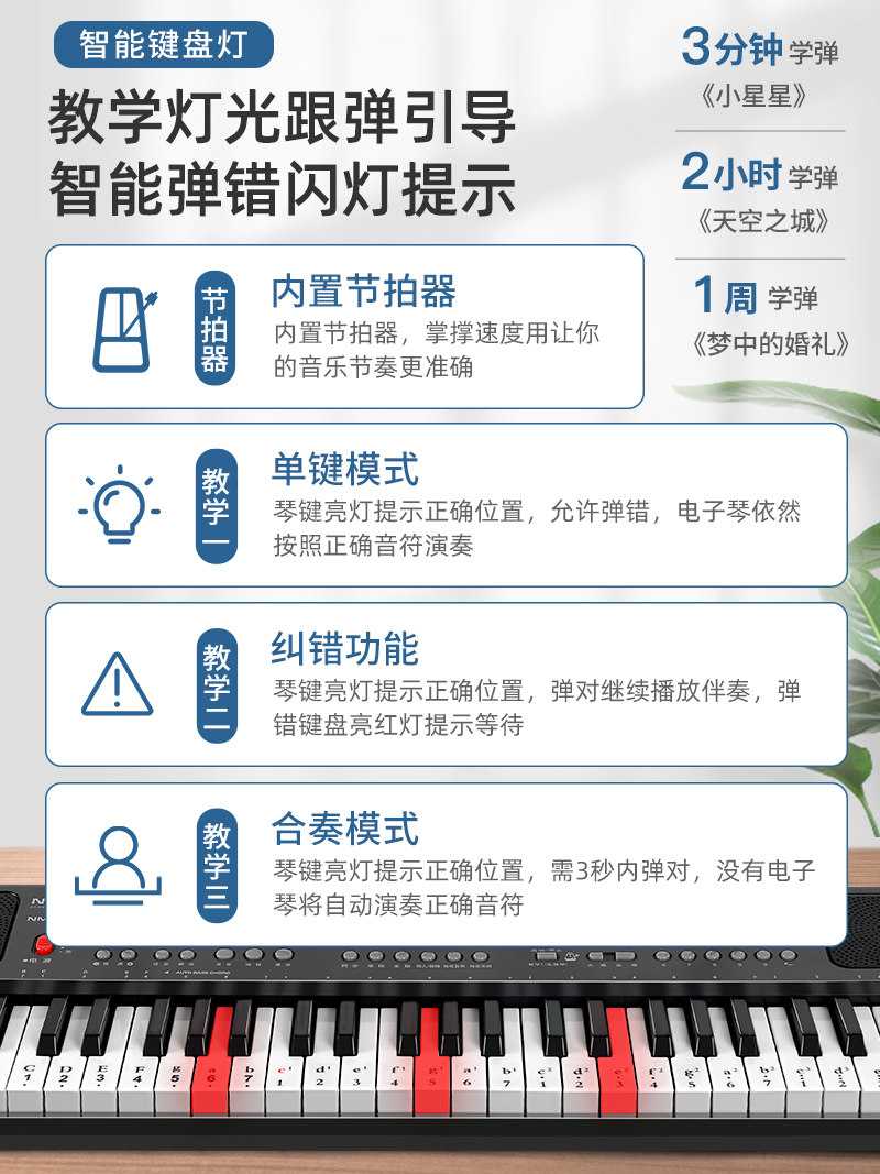 Фотогальванический умный универсальный профессиональный синтезатор для начинающих, 61 клавиш