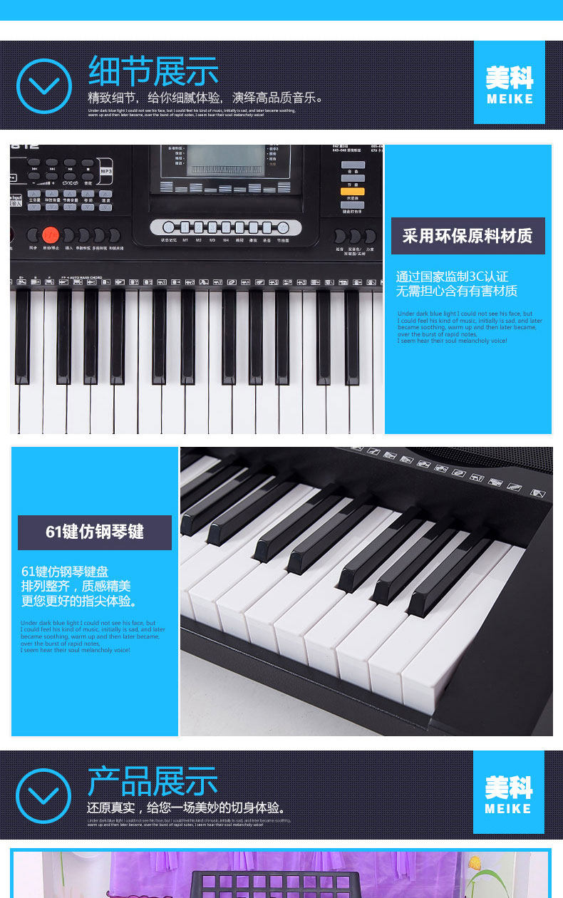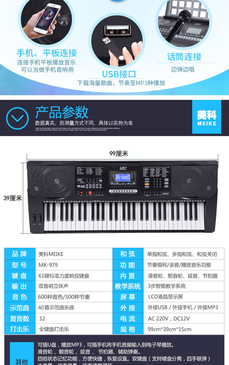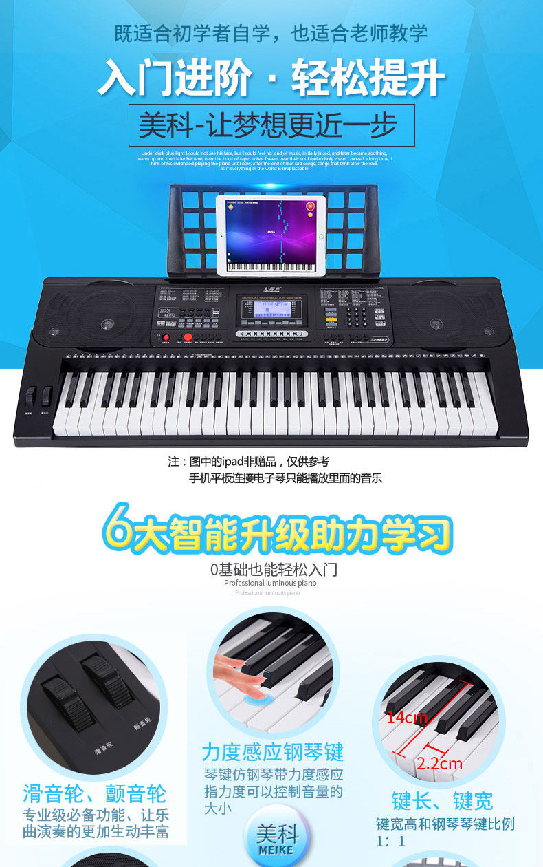 Профессиональный универсальный синтезатор для взрослых, 61 клавиш, обучение