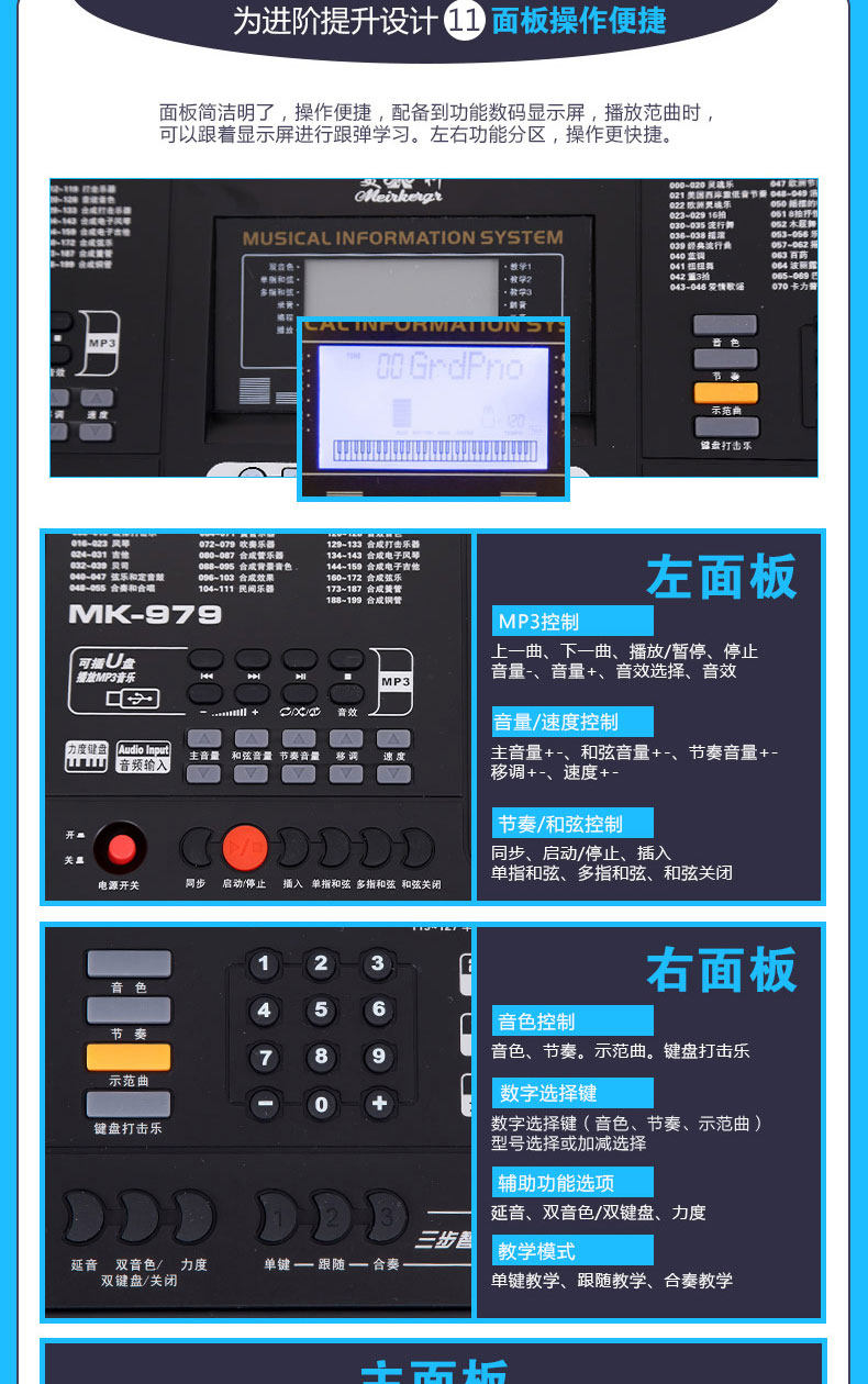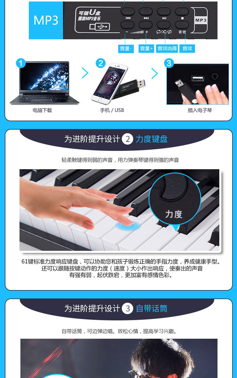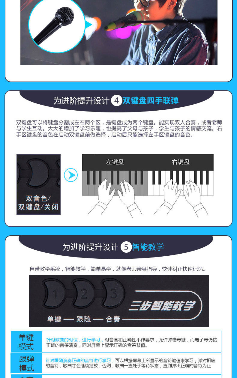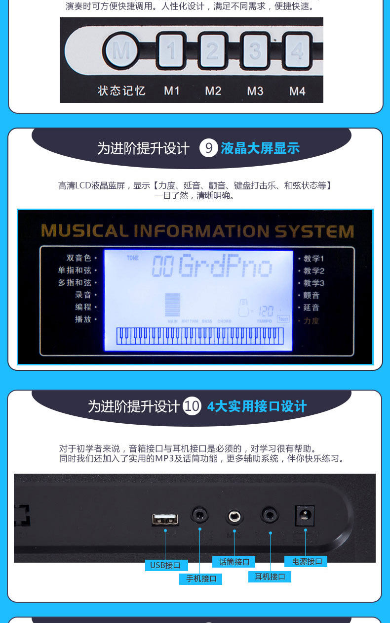 Профессиональный универсальный синтезатор для взрослых, 61 клавиш, обучение