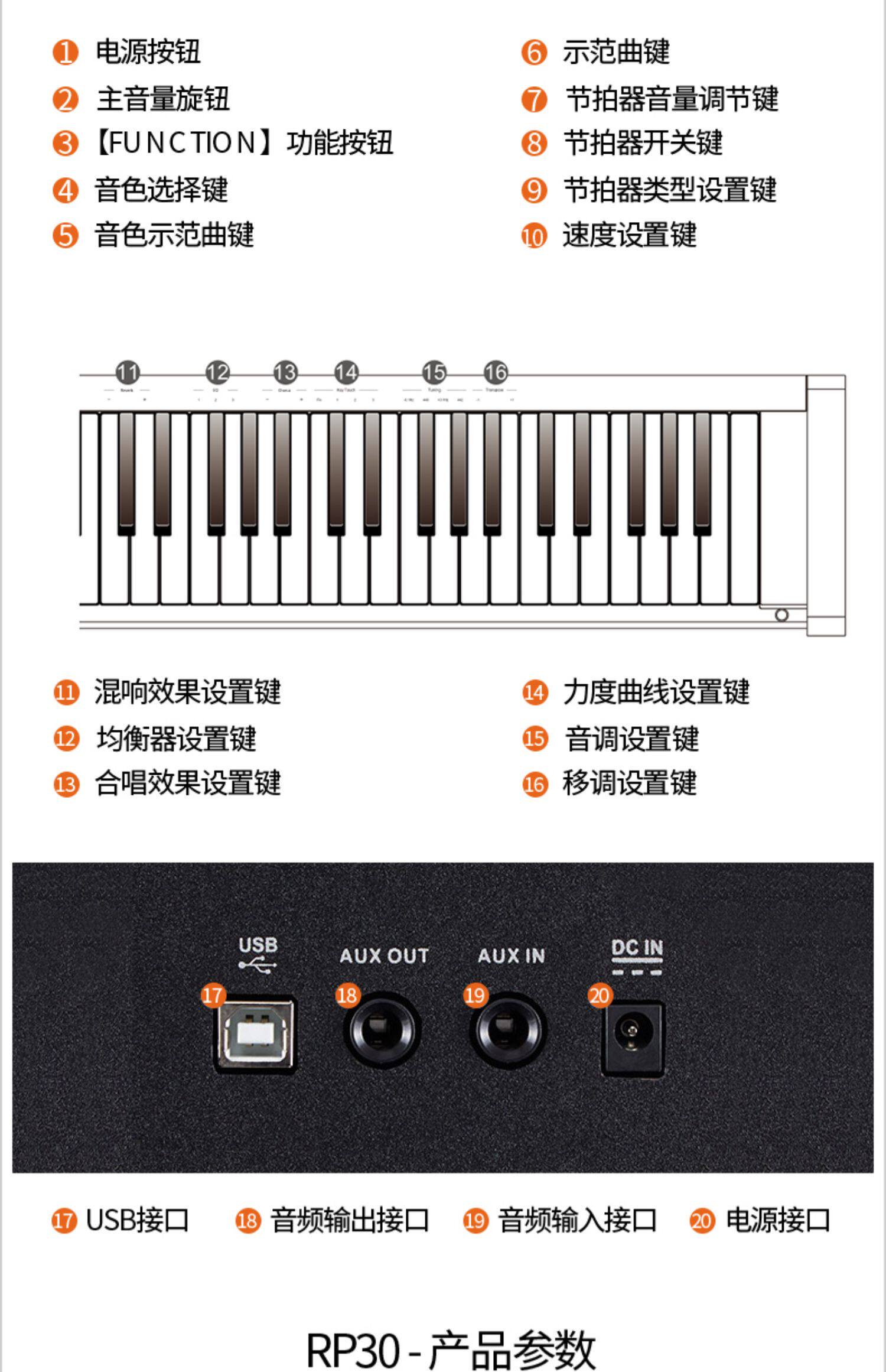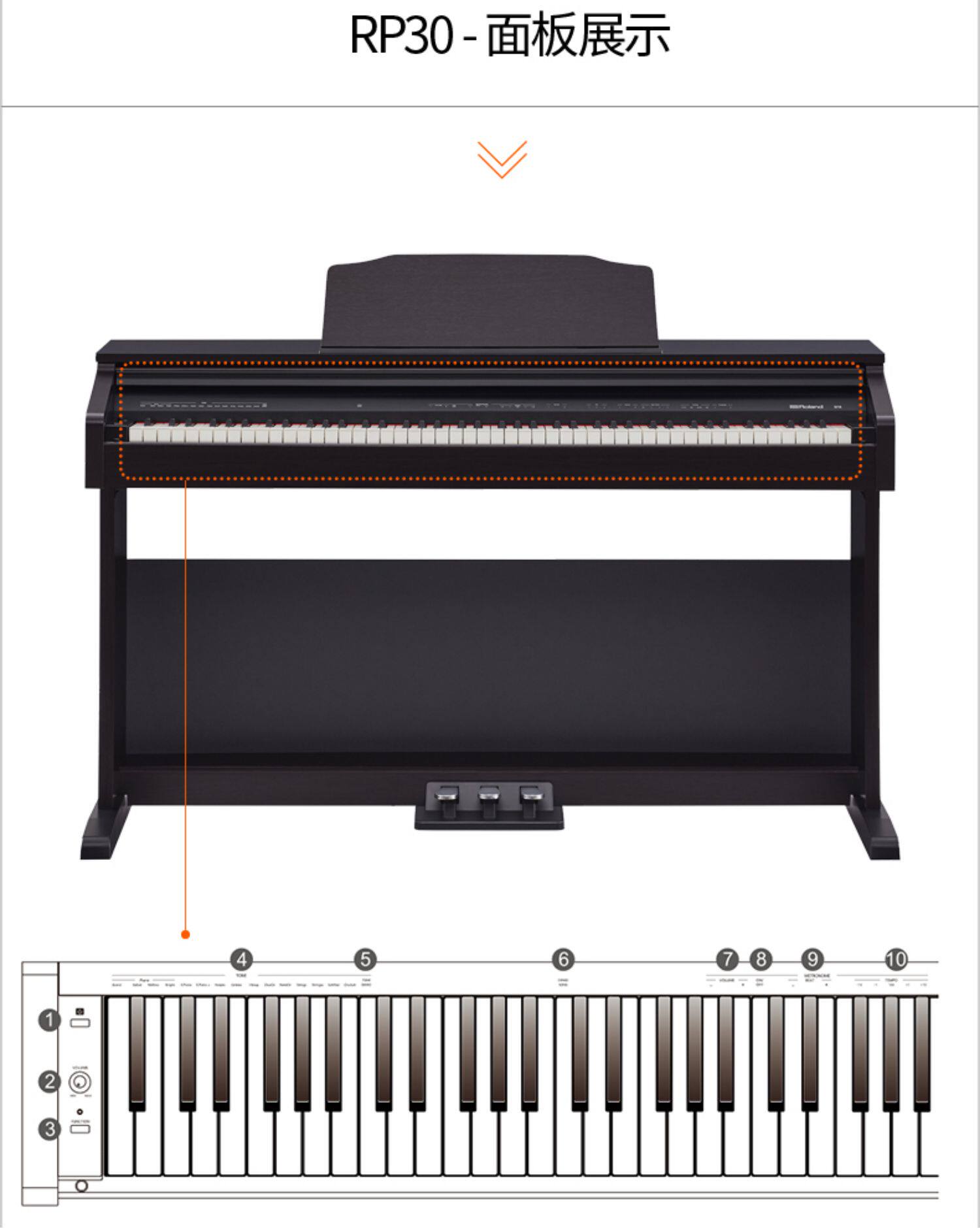 - RP30 (Piano Cover)+Оригинальная деревянная рама+три педали+фортепианная стул+гарнитура Rh5+крышка фортепиано