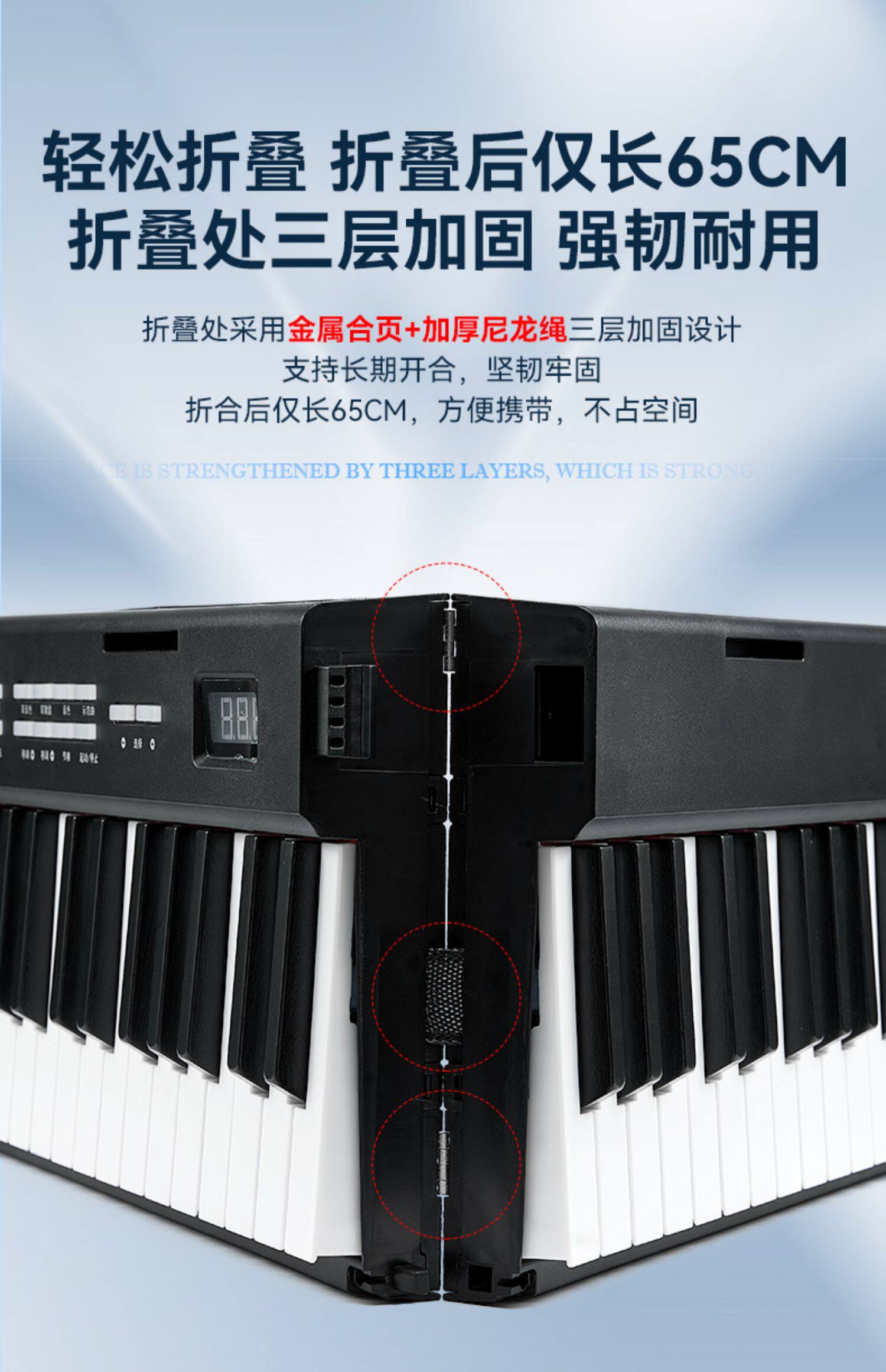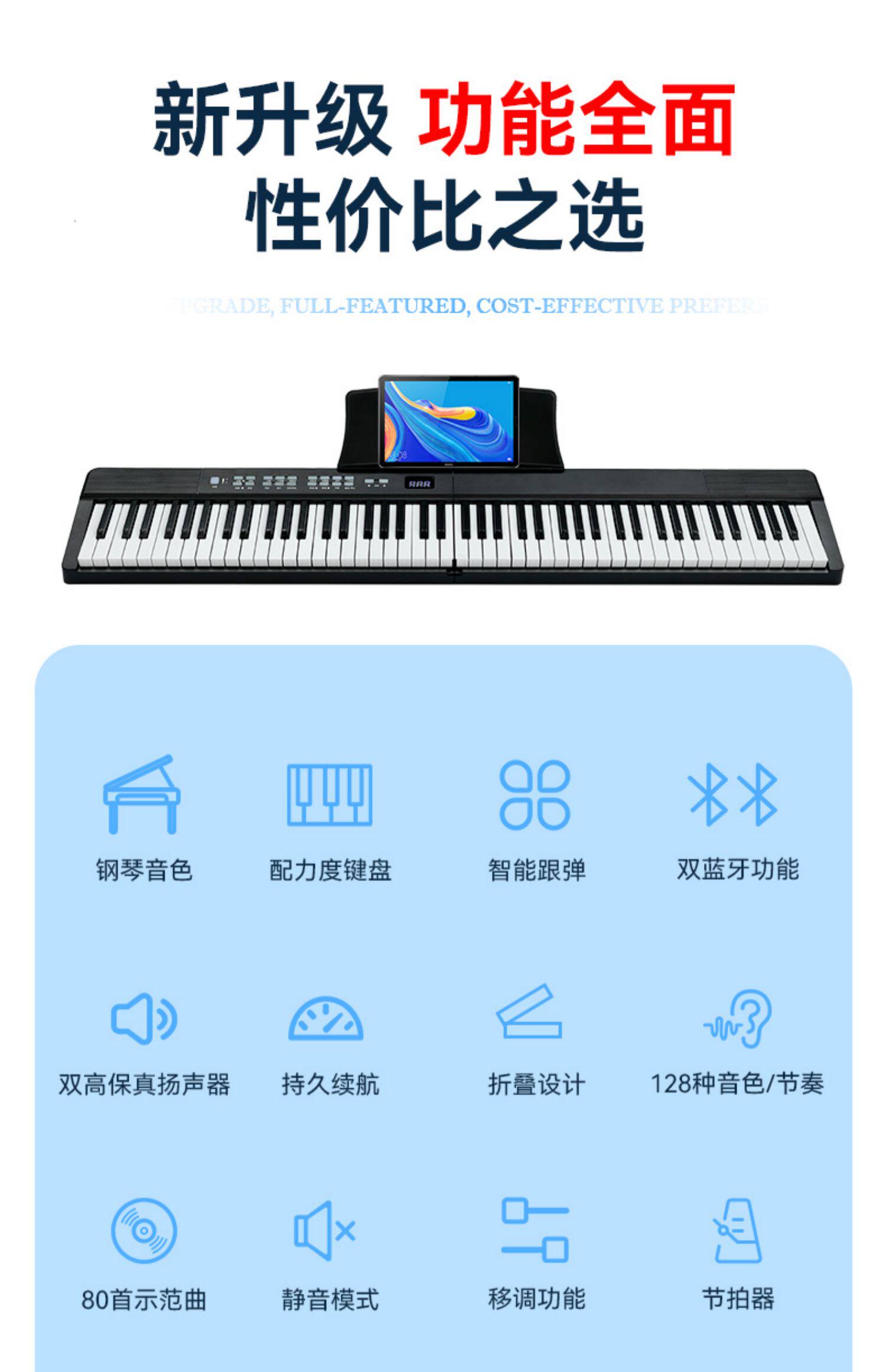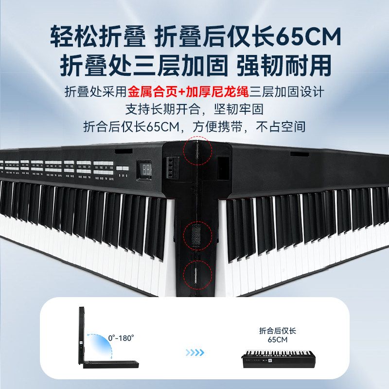 Портативная клавиатура, электронное складное профессиональное освещение для пианино для взрослых, практика, 88 клавиш