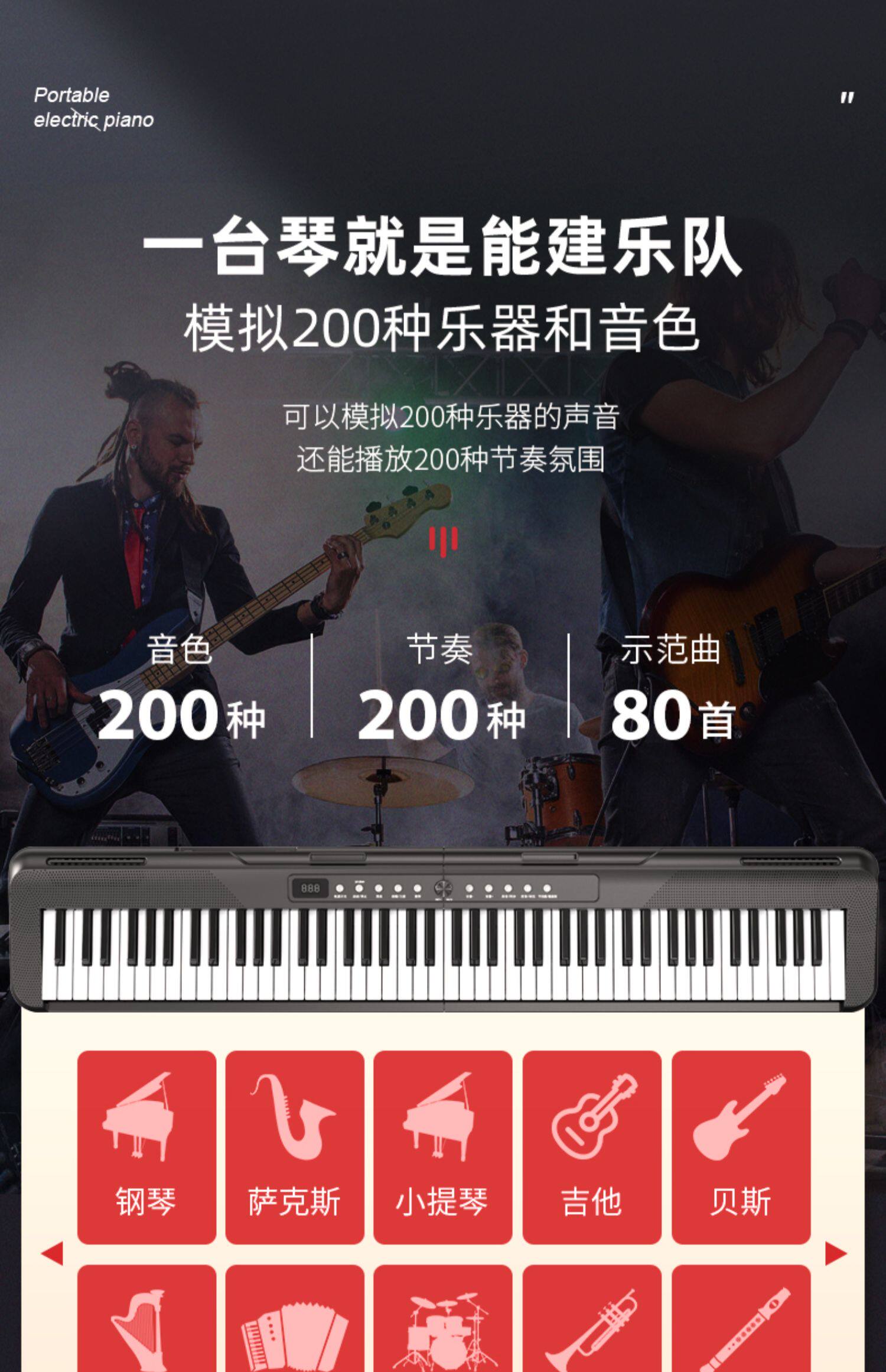 Yamaha, профессиональный портативный синтезатор для начинающих, 88 клавиш