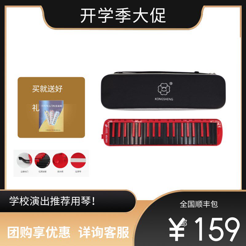 孔声 F37S Professional Performance Level 37 -Ключ Ветровой фортепиано, красный и черный цвет, синий черный цвет, соответствующая трубе