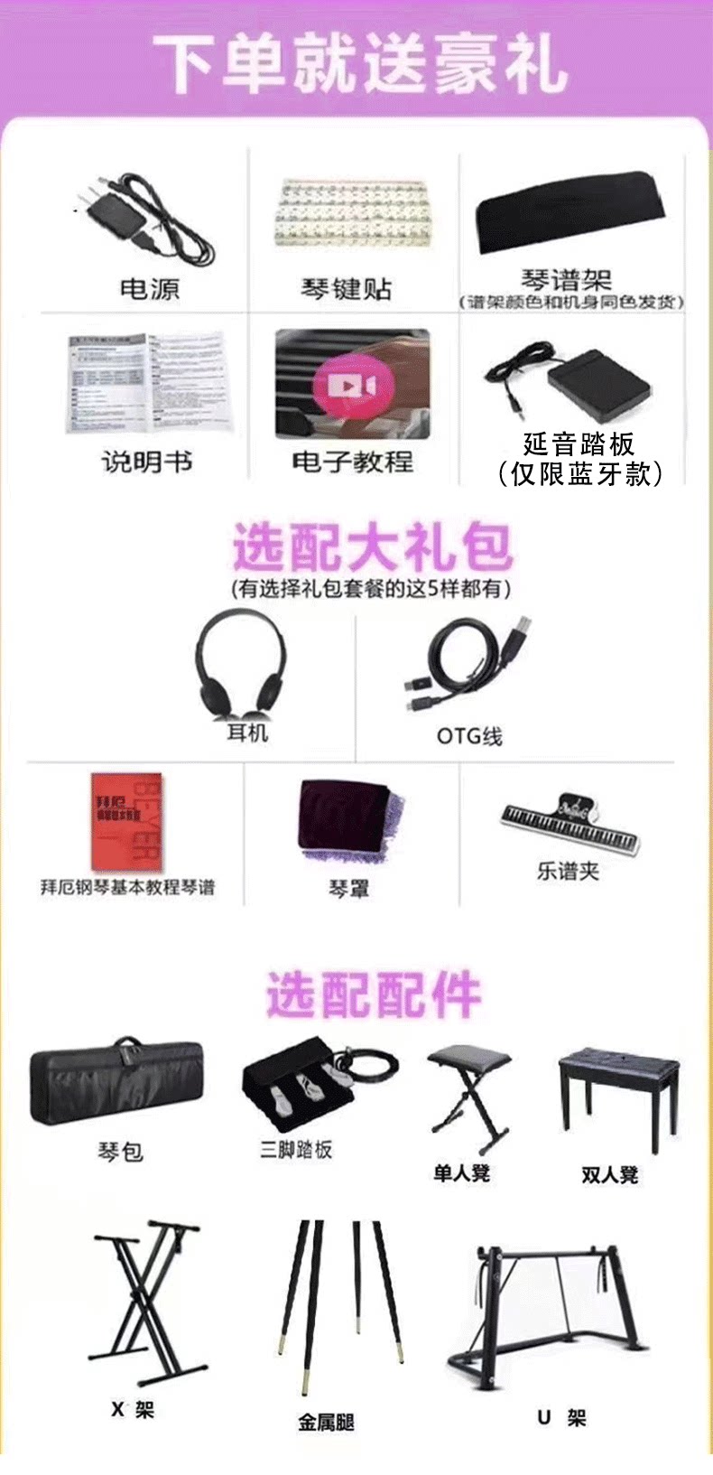 - [Полновесный молоток + Bluetooth + одна педаль] розовый и белый