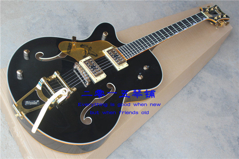 G6196T-59 Двойной F-дыр Большой джойстик левый фонарик гитара черное пианино для кузова золотой порошок